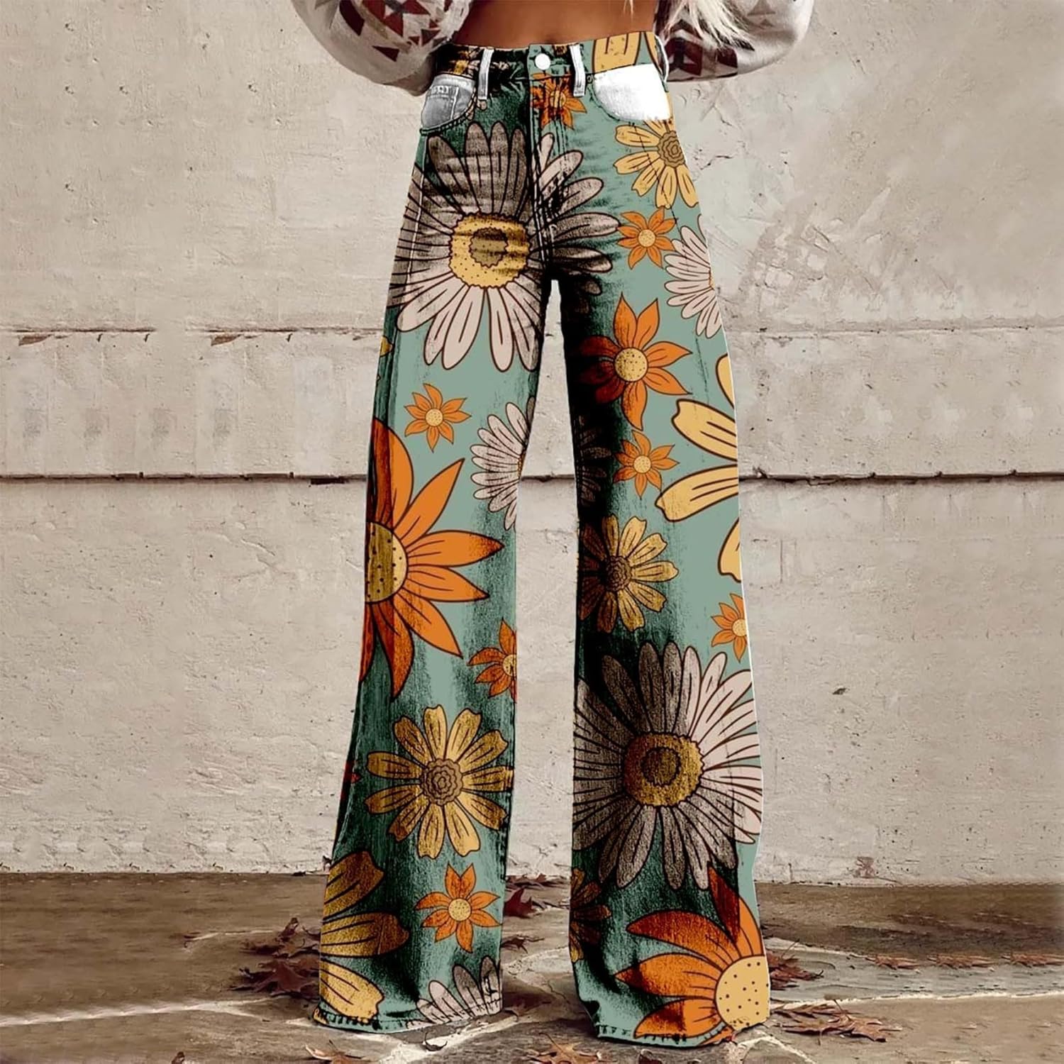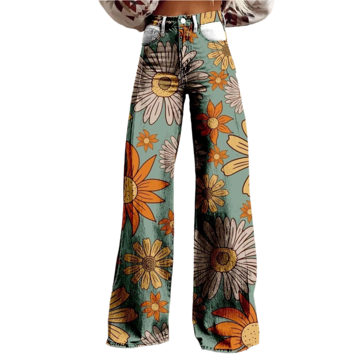 ✓ Boho-Chic Look: Das lebendige florale Muster verleiht den Wide Leg Jeans einen einzigartigen, modernen Touch.