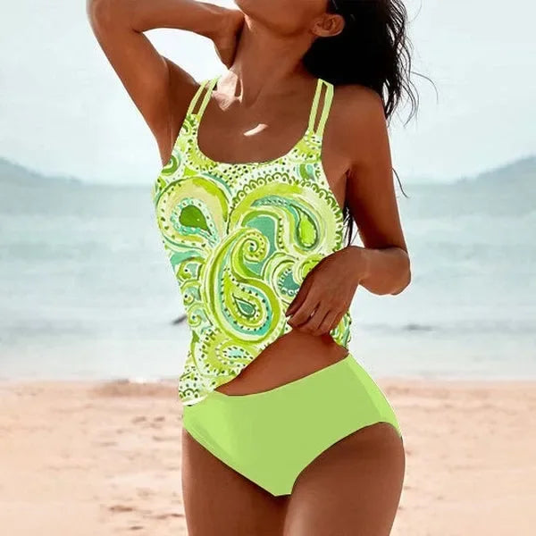 Dieses stilvolle zweiteilige Bade-Set vereint verspieltes Design mit praktischem Komfort. Das sportliche Top im Westenstil bietet sicheren Halt, während der elastische Schnitt maximale Bewegungsfreiheit ermöglicht. Der florale Allover-Print verleiht dem Set einen femininen, frischen Look – perfekt für sonnige Tage am Wasser.