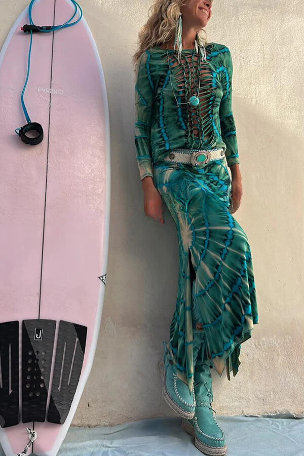 Amanda® | Stretch-Schlitzrock mit hohem Bund und Batikmuster
