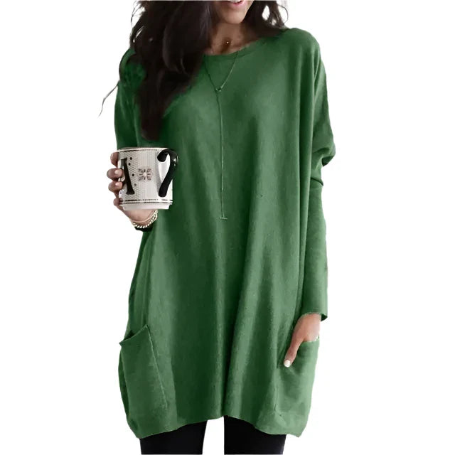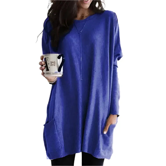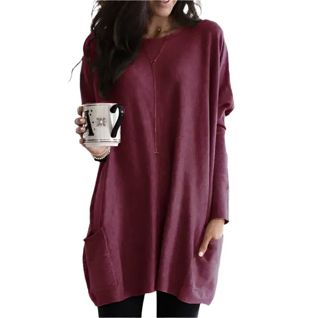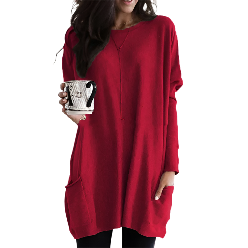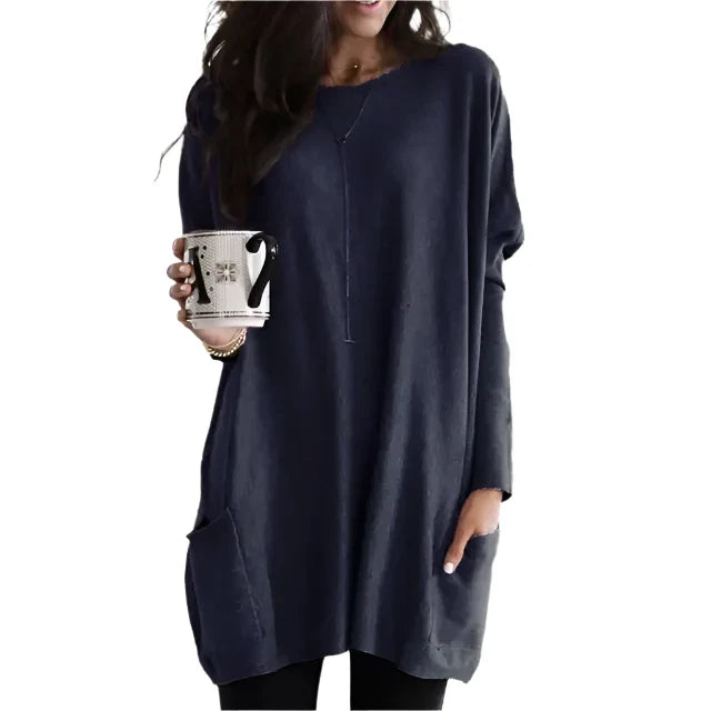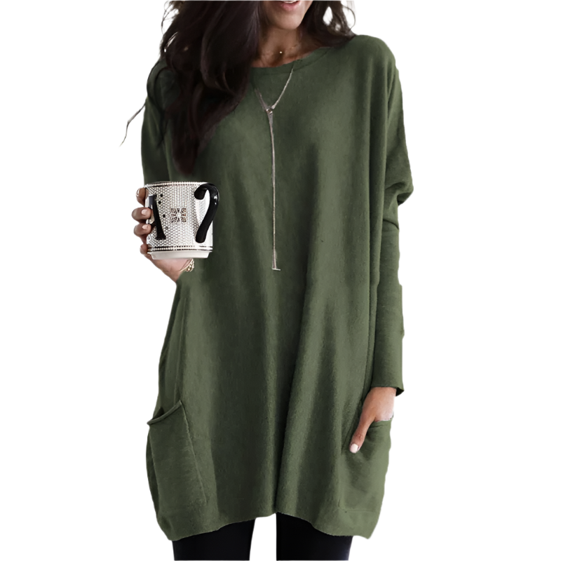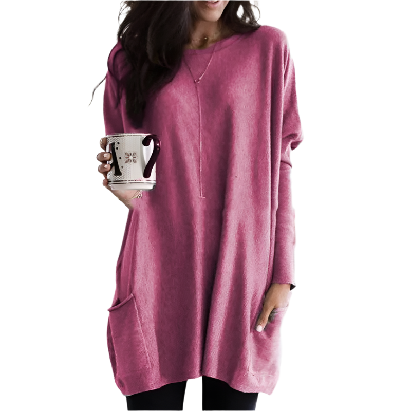 Genießen Sie mühelose Eleganz mit der Amélie-Tunik. Diese liebevoll gestaltete Langarmtunik vereint Funktionalität mit Mode und bietet atmungsaktive Weichheit, einen schmeichelhaften Schnitt und praktische Taschen. Ein vielseitiges Must-have für jede Garderobe.
