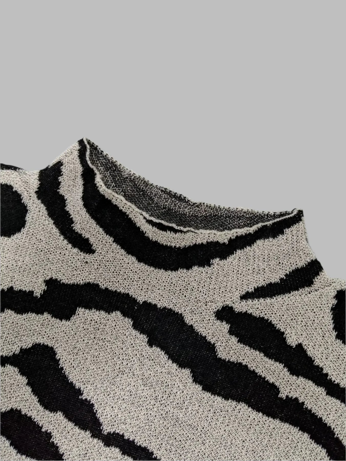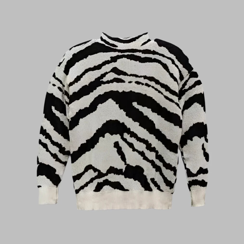 Hülle dich in das mutige, aber elegante Design des Camila Pullovers, bei dem Mode auf Komfort trifft. Dieses locker geschnittene, langärmlige Stück besticht durch ein einzigartiges Zebra-Muster und sorgt für einen trendigen Look, der perfekt für Herbst und Winter ist. Der halbe Rollkragen bietet genau die richtige Menge an Wärme, während du modisch immer einen Schritt voraus bist.