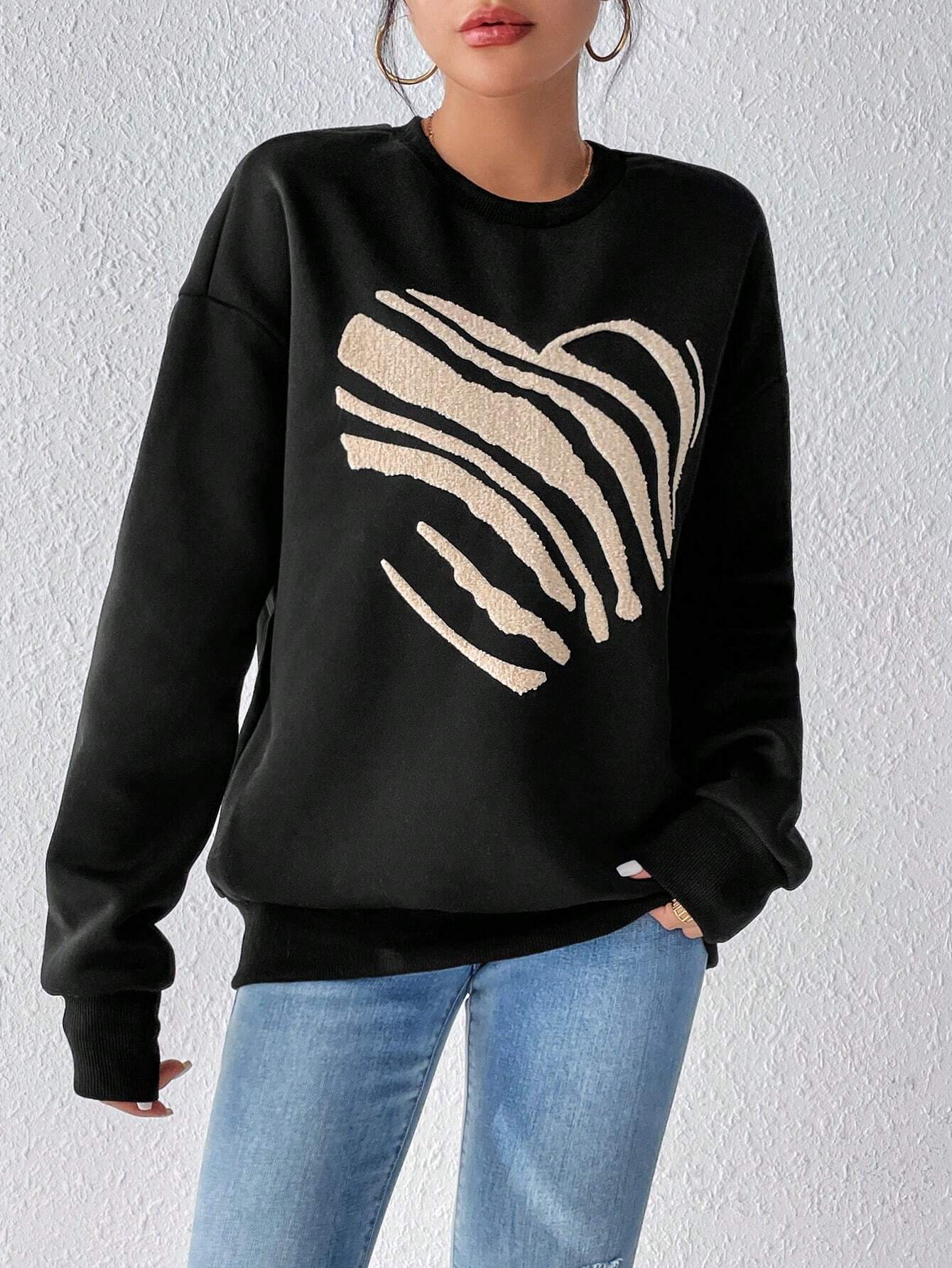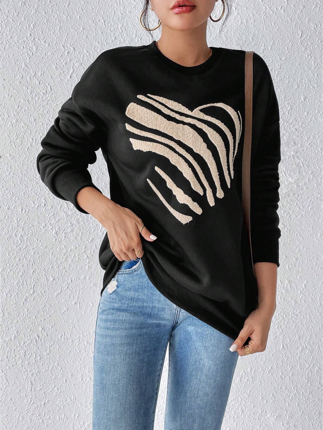 Bringe eine verspielte Note in deine Freizeitgarderobe mit dem Herz Print Damen Sweatshirt. Mit einem auffälligen Herzmotiv und einem lässigen Design kombiniert dieses Sweatshirt wohltuende Wärme mit einem schicken, flirty Look, der perfekt für jeden Anlass ist.