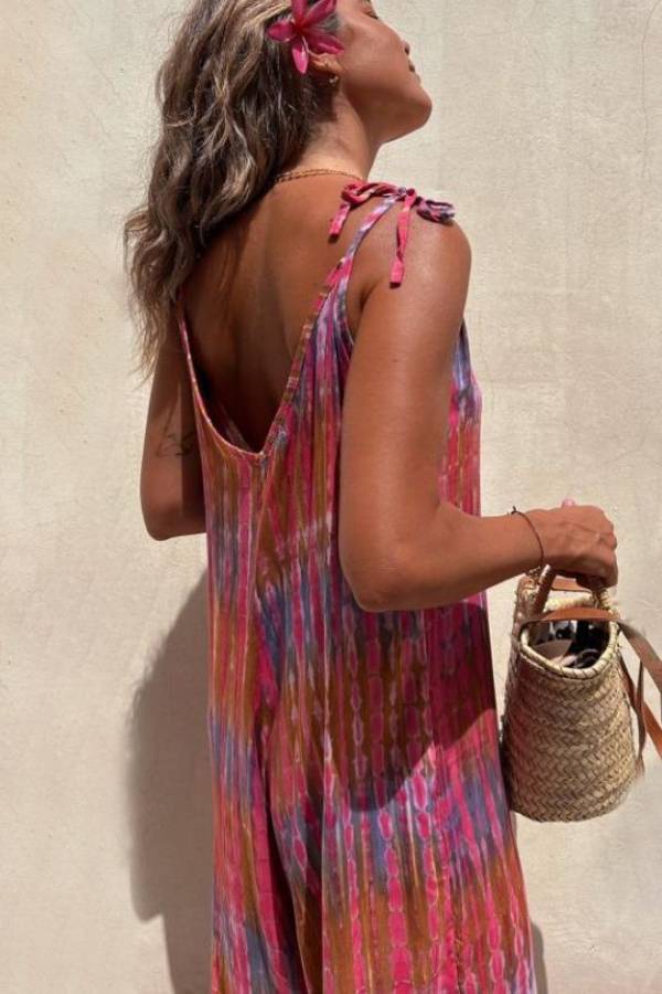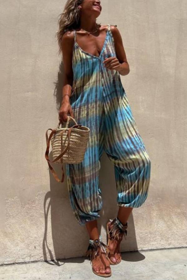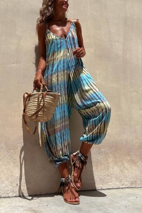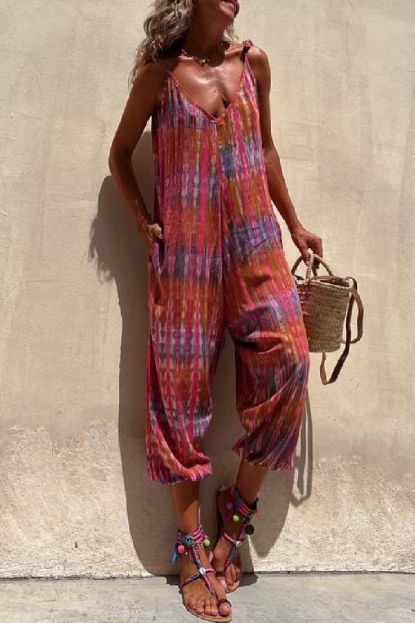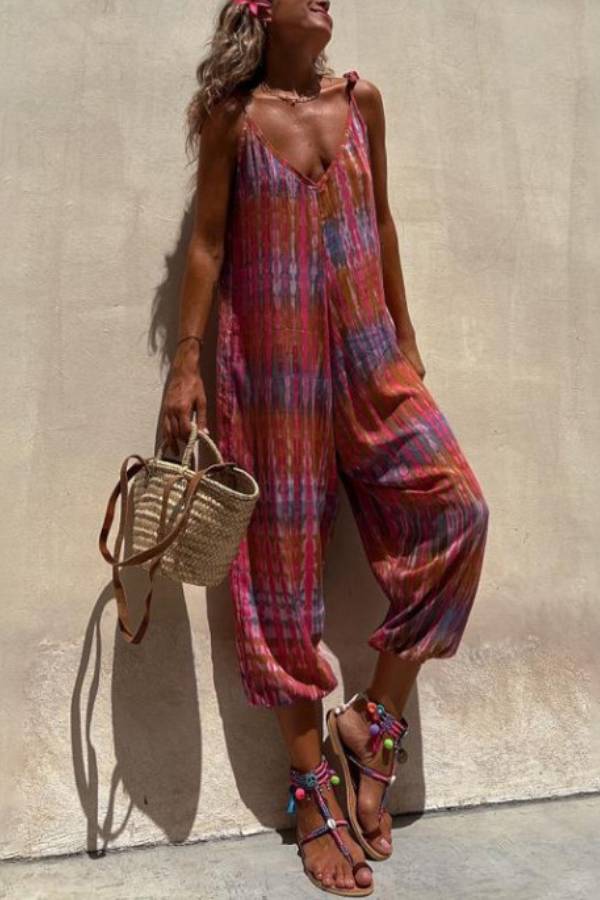 Claudia® | Bedruckter, lockerer Schnüroverall mit V-Ausschnitt