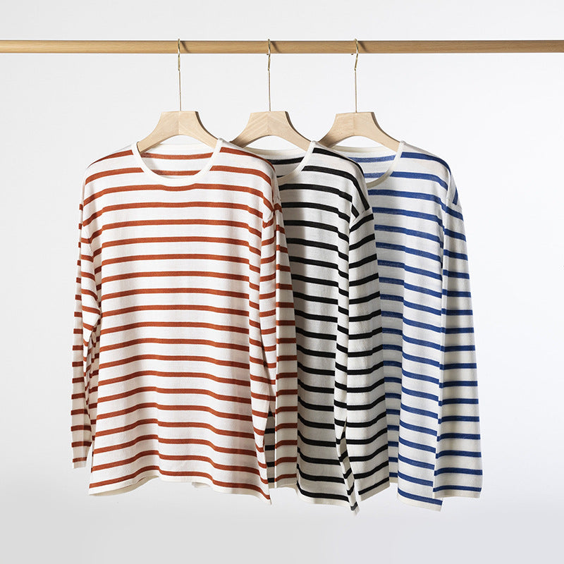 Bei Heidi-Mode stehen Qualität und Stil für uns an erster Stelle. Unser Femme Relaxed Fit gestreiftes Langarmshirt verbindet beides und ist eine essentielle Ergänzung in Ihrer Garderobe.