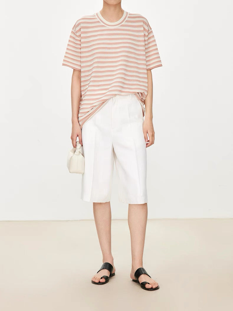 Dieses trendige Damen oversized gestreifte Rundhals-T-Shirt vereint Komfort und Stil auf wunderbare Weise. Hergestellt aus hochwertigem, atmungsaktivem Material, bietet es eine lockere Passform, die sich perfekt für den täglichen Gebrauch eignet. Der klassische Rundhalsausschnitt und die sanften, gerippten Akzente fügen einen Hauch von Eleganz hinzu und machen es zur idealen Wahl sowohl für entspannte Ausflüge als auch für gemütliche Tage zu Hause.