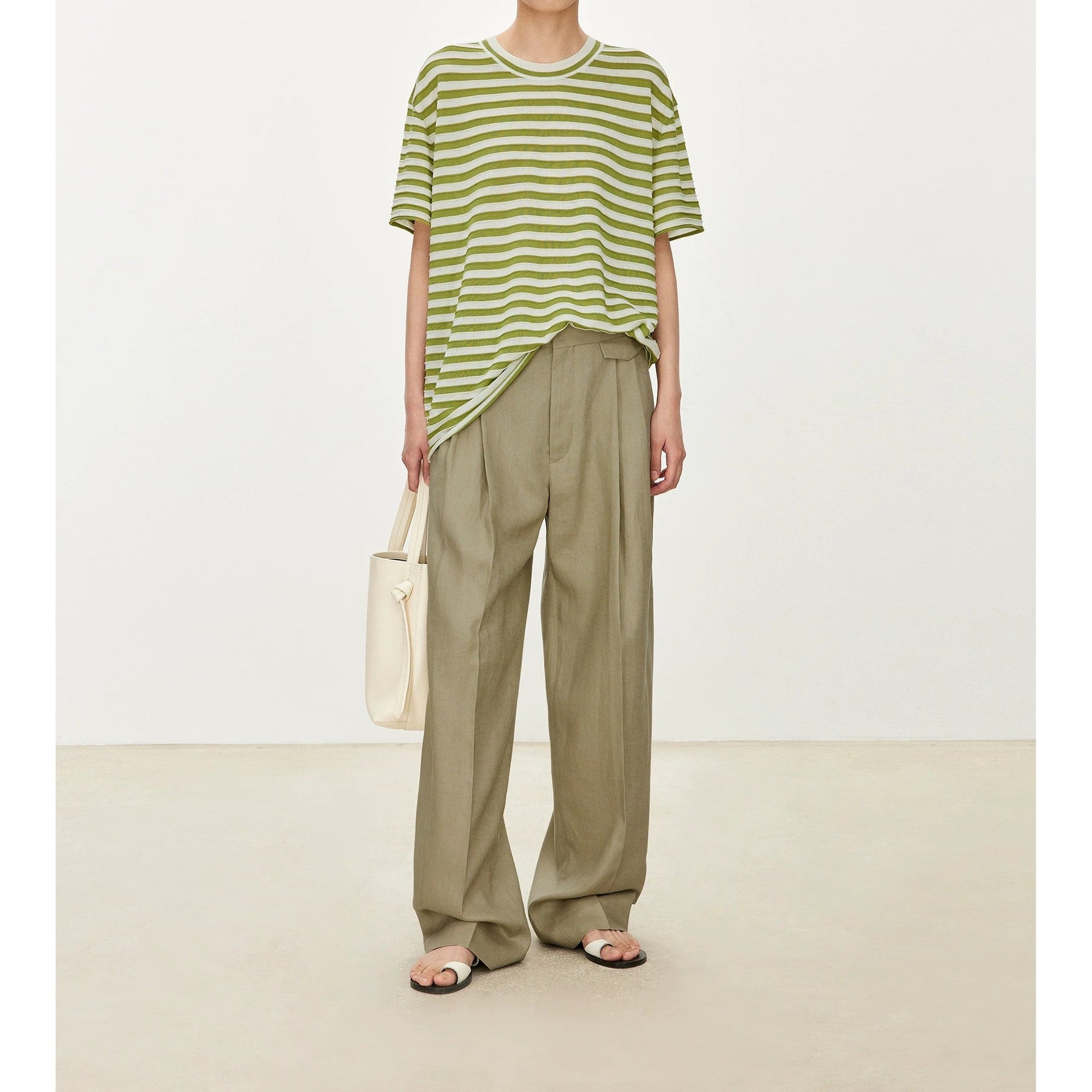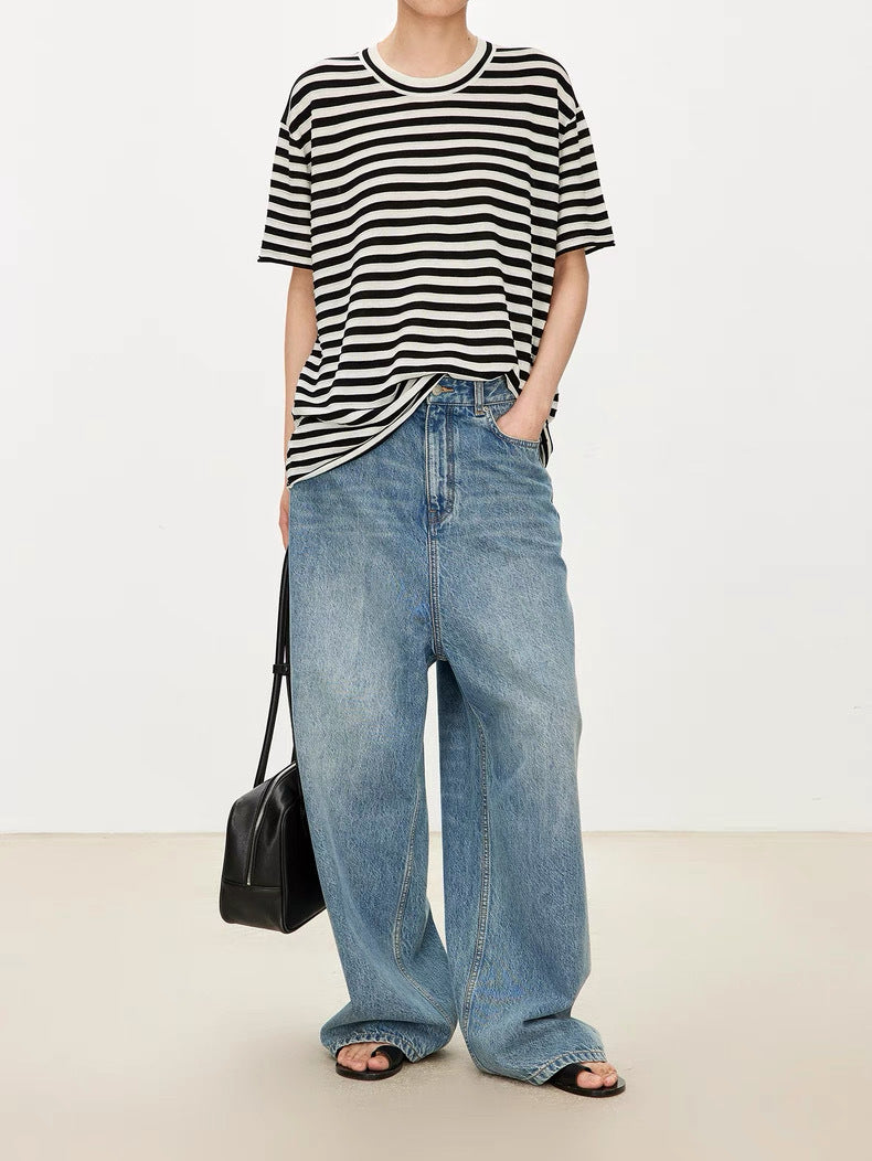 Verleihen Sie Ihrer lässigen Kleidung mit unserem oversized gestreiften Rundhals-T-Shirt einen neuen Look