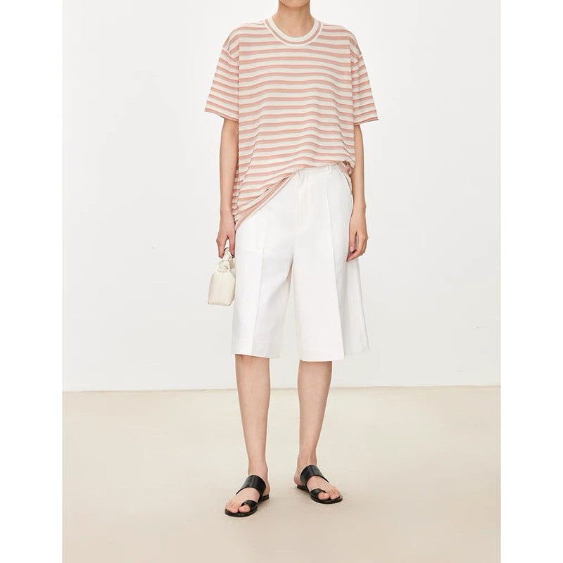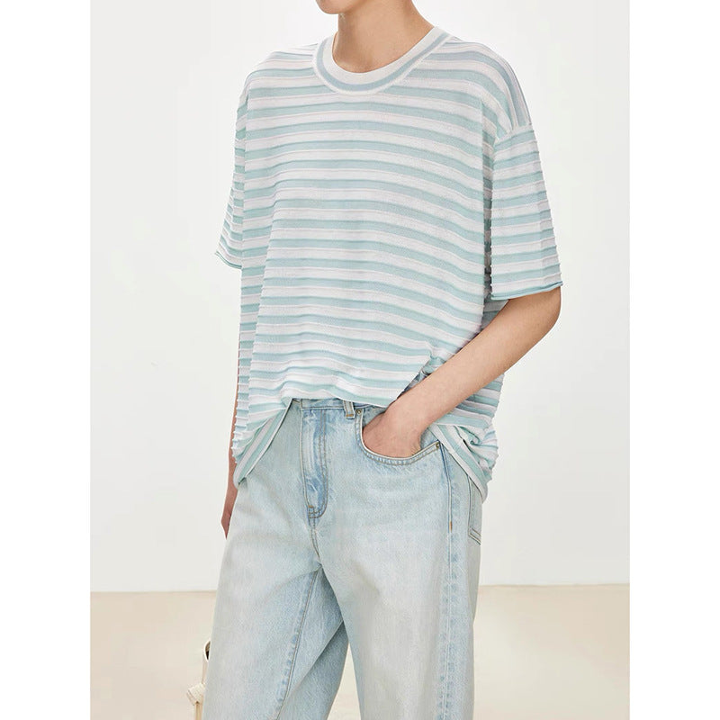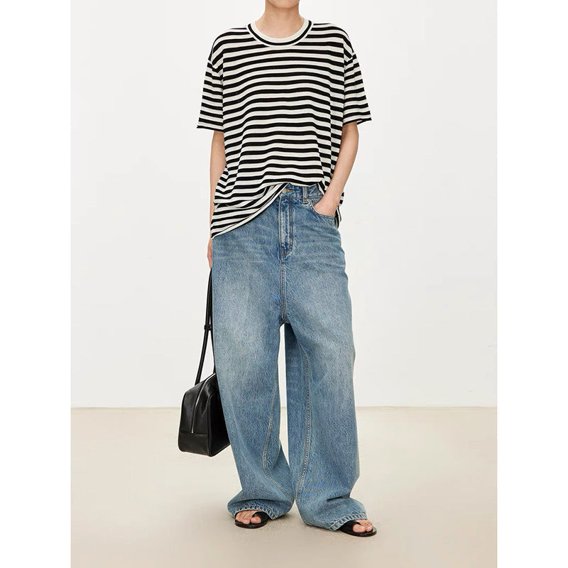 Damen Übergroße Gestreifte Rundhals T-Shirt Heidi-Mode
