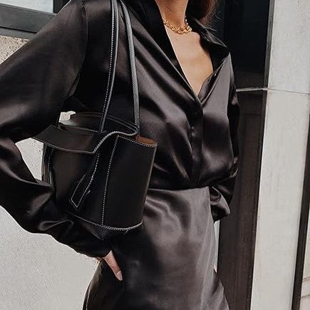 Aus diesem Grund gehört Diora | Seidig glänzendes Hemd mit Knopfverschluss und Manschetten in Ihren Kleiderschrank:
