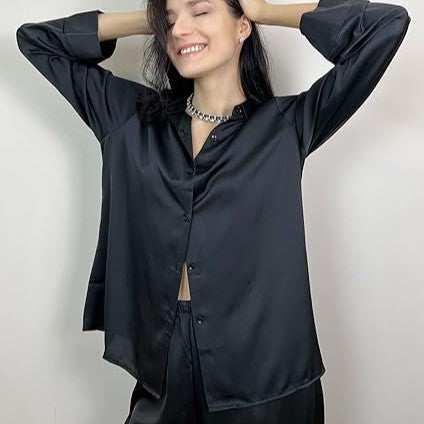 Eleganz und Komfort – Diora Seidig glänzendes Hemd