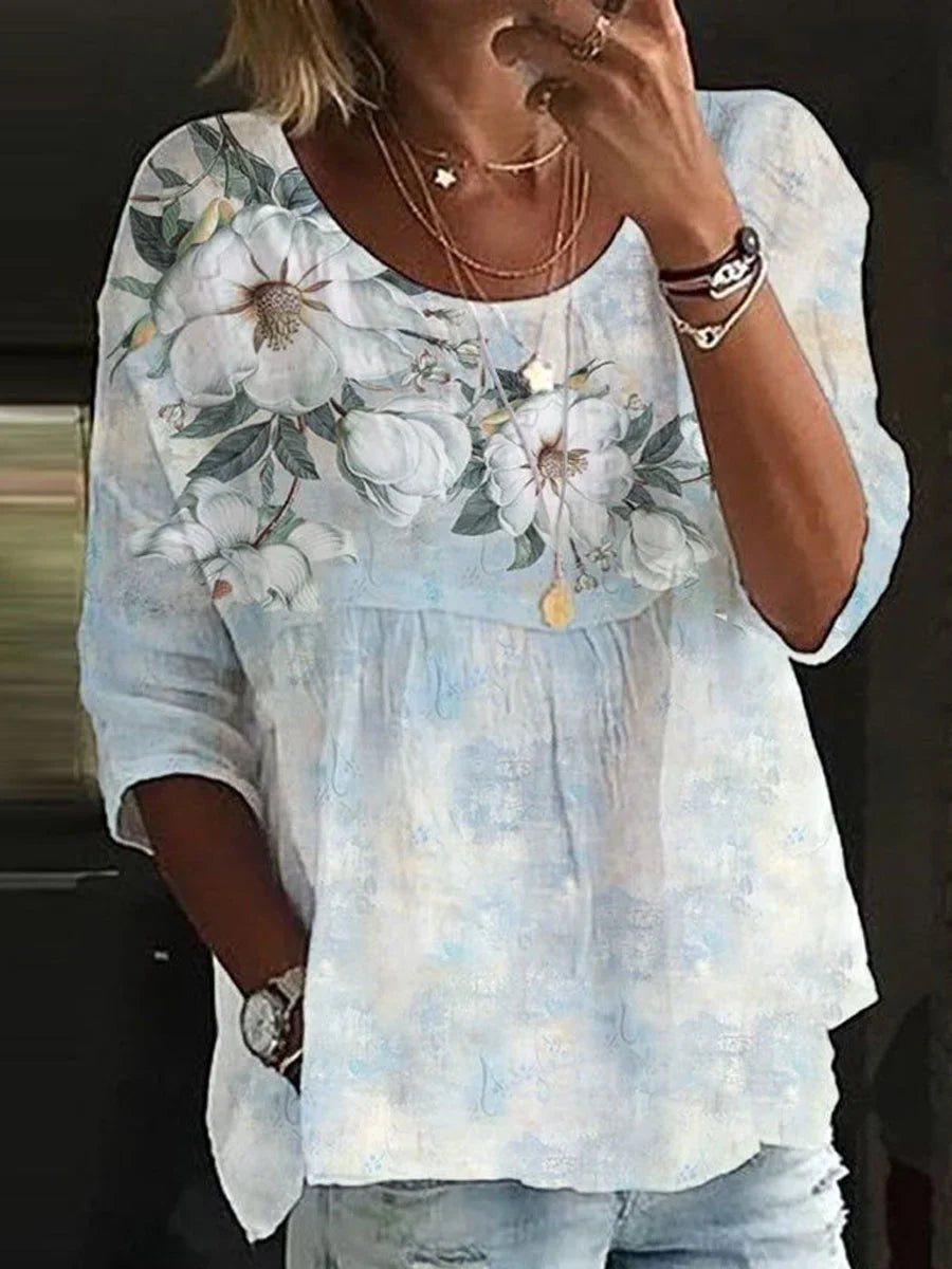 Diese lockere Bluse ist perfekt für Tage, an denen du dich frei fühlen und trotzdem gepflegt wirken möchtest. Das leichte Material, der sanfte Rundhalsausschnitt und der entspannte Schnitt sorgen für einen stilvollen Look ohne Aufwand – ob im Urlaub, in der Stadt oder bei entspannten Momenten.