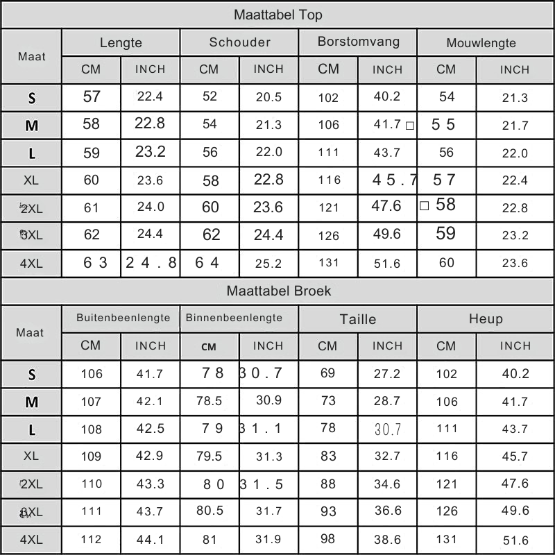 Größe | Taille (cm) | Hüfte (cm) | Beininnenlänge (cm) |