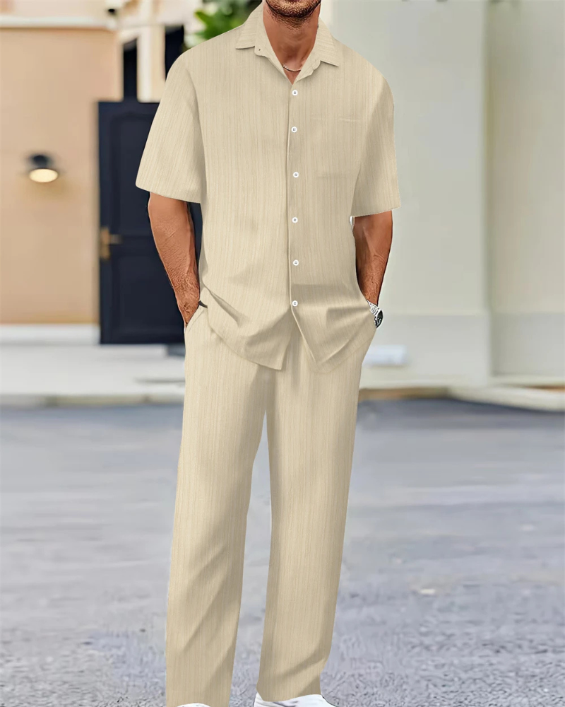 Herren Freizeit-Zweiteiler mit Kurzarm-Hemd und bequemer Hose