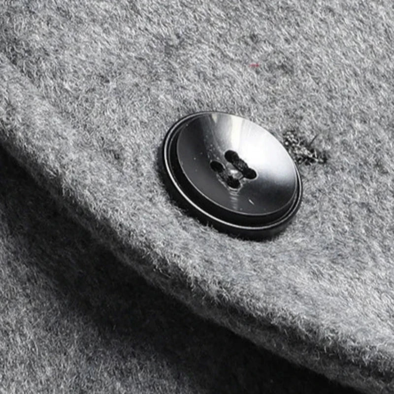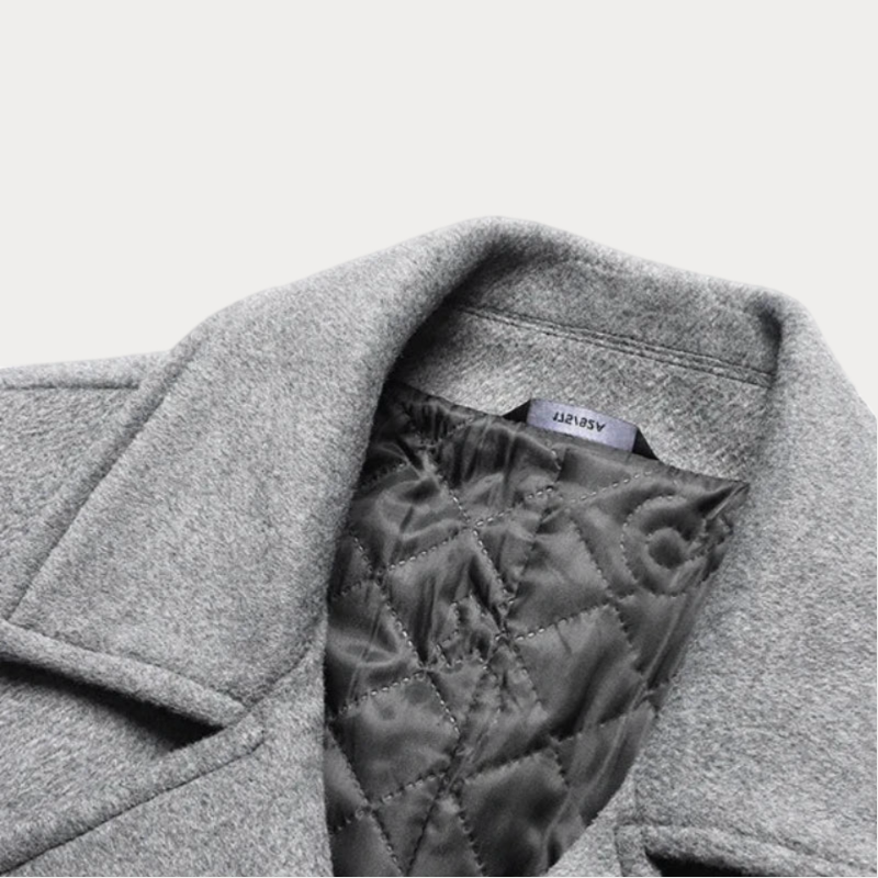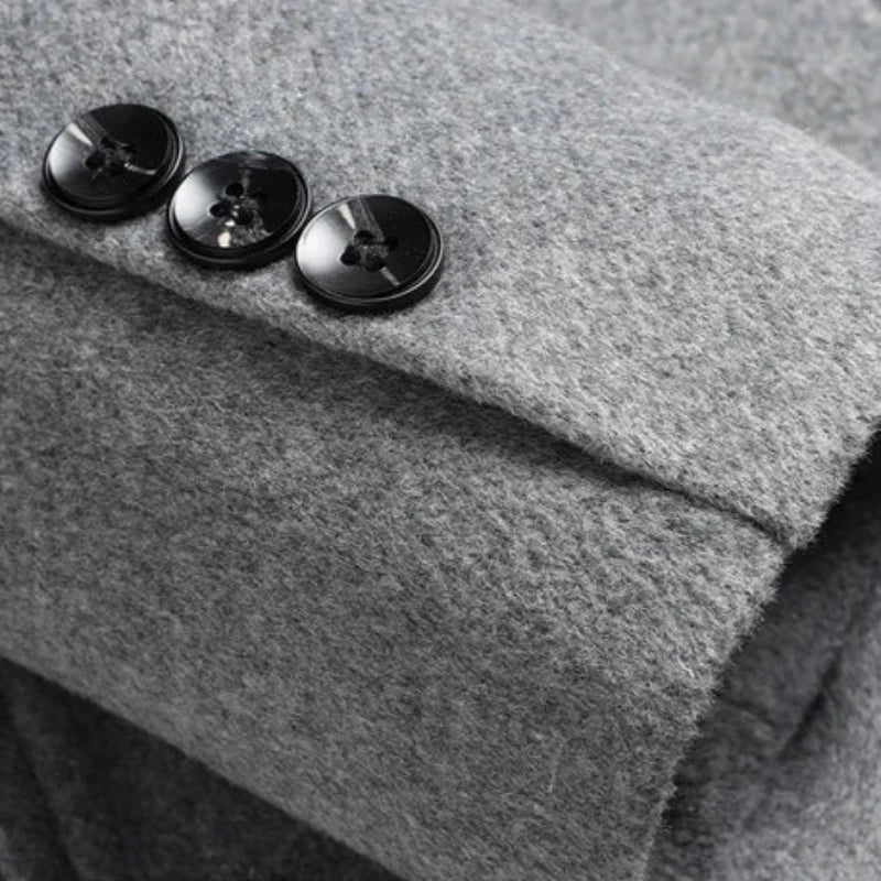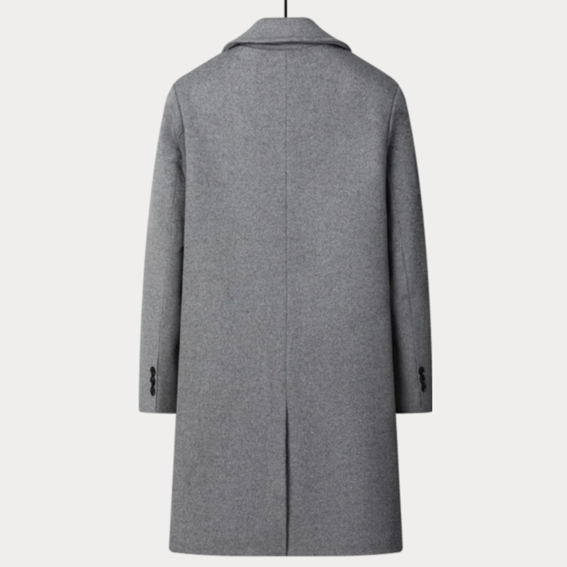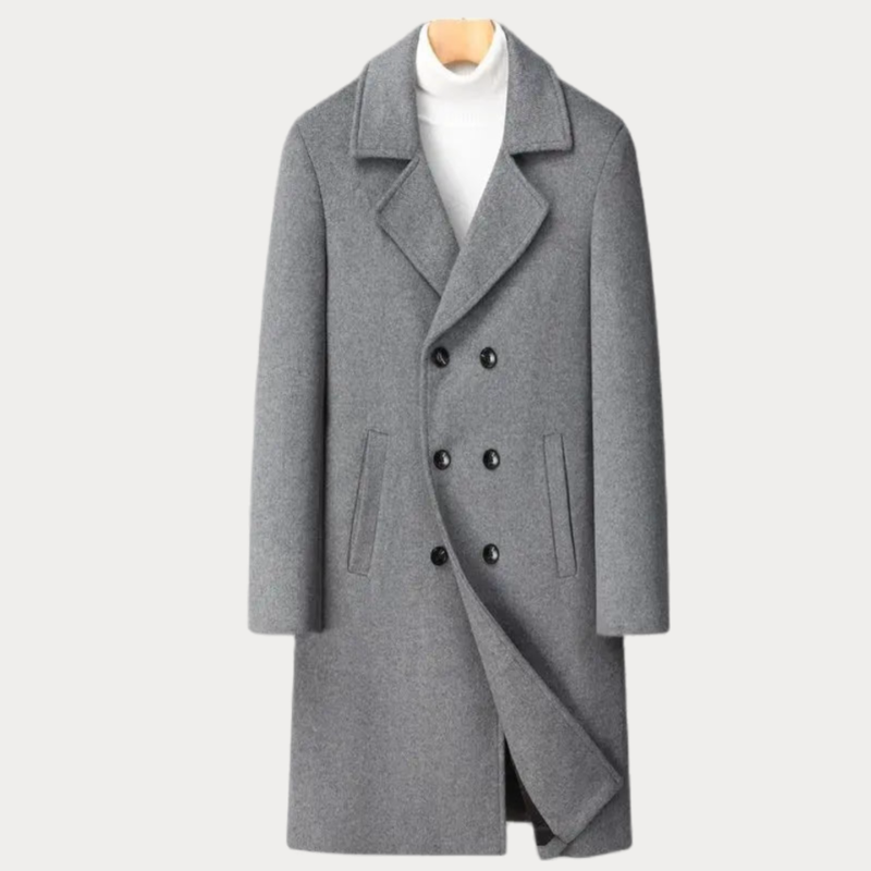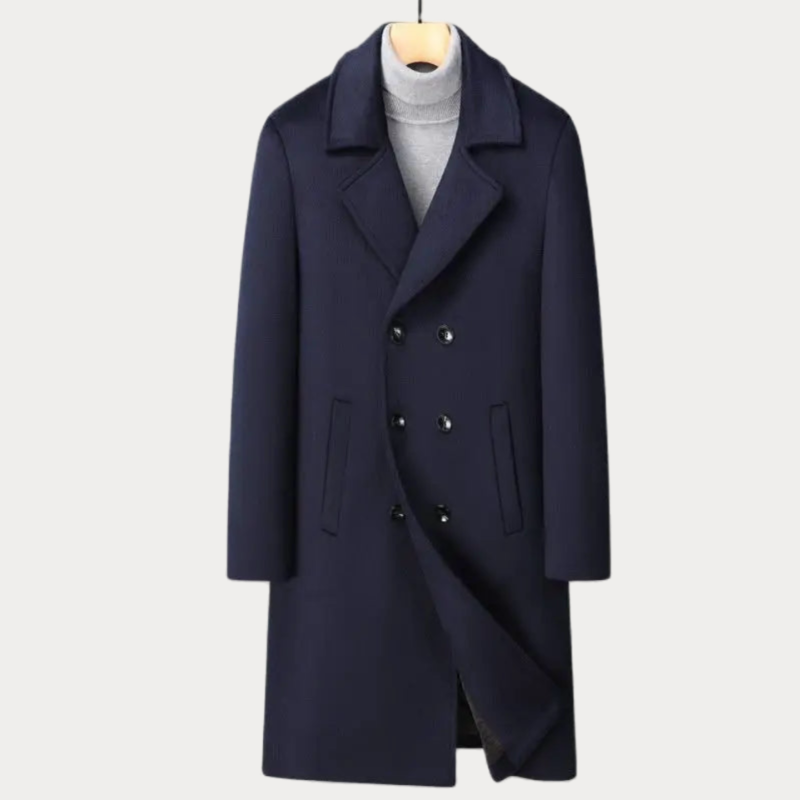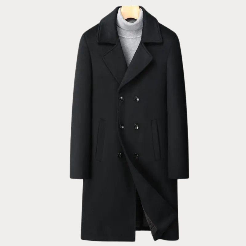 • Klassisches Design: Der lange, doppelt geknöpfte Mantel mit Reverskragen bietet eleganten Stil für viele Anlässe.