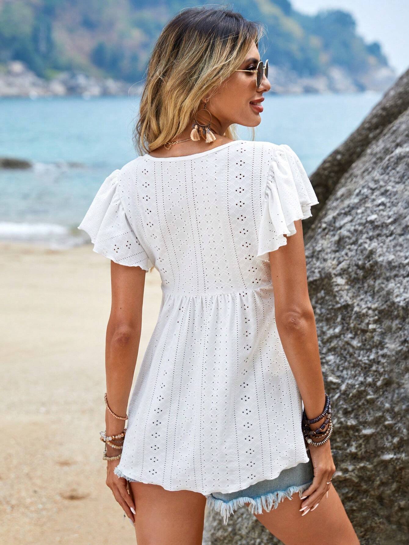 - Design: Eyelet-Stoff mit verspieltem Bindekragen