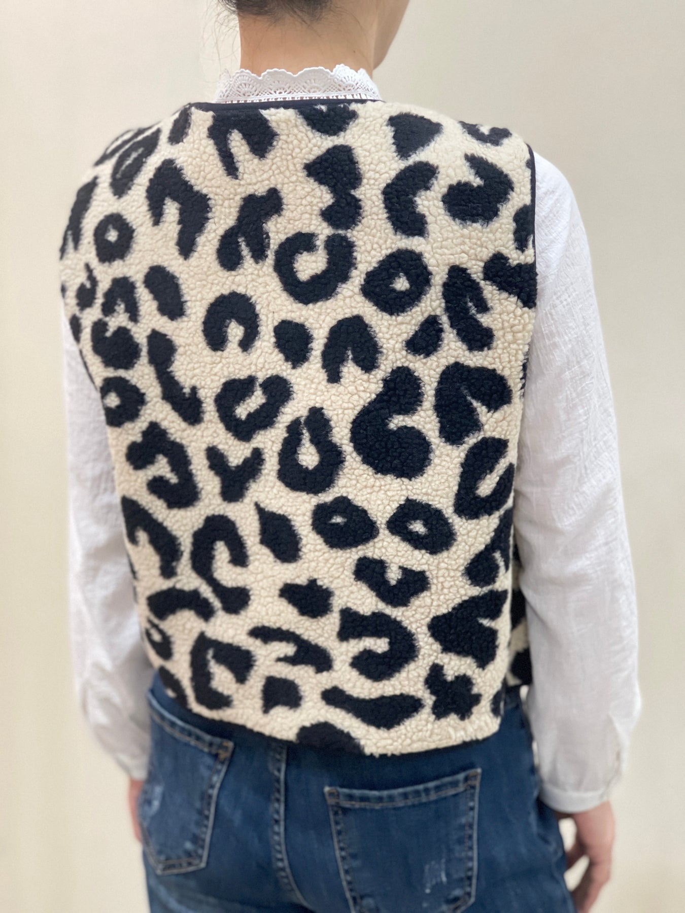 Lucie – Leo-Print Bouclette-Weste für Damen