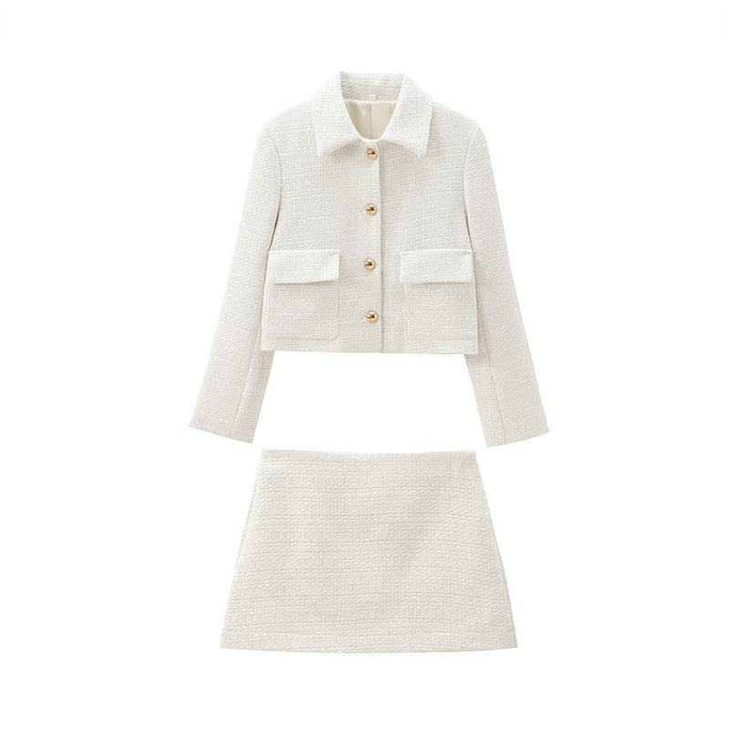 Dieses elegante Set besteht aus einem einreihigen Mantel mit Reverskragen und praktischen Taschen, kombiniert mit einem Minirock in A-Linie , der einen raffinierten und modernen Look verleiht. Hergestellt aus hochwertigem Mischpolyester , bietet es Komfort, Atmungsaktivität und eine perfekte Passform für jeden Anlass.