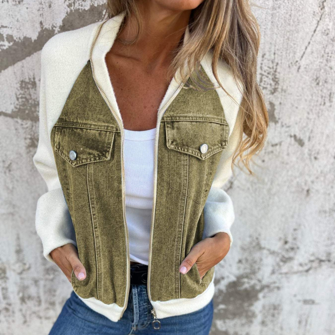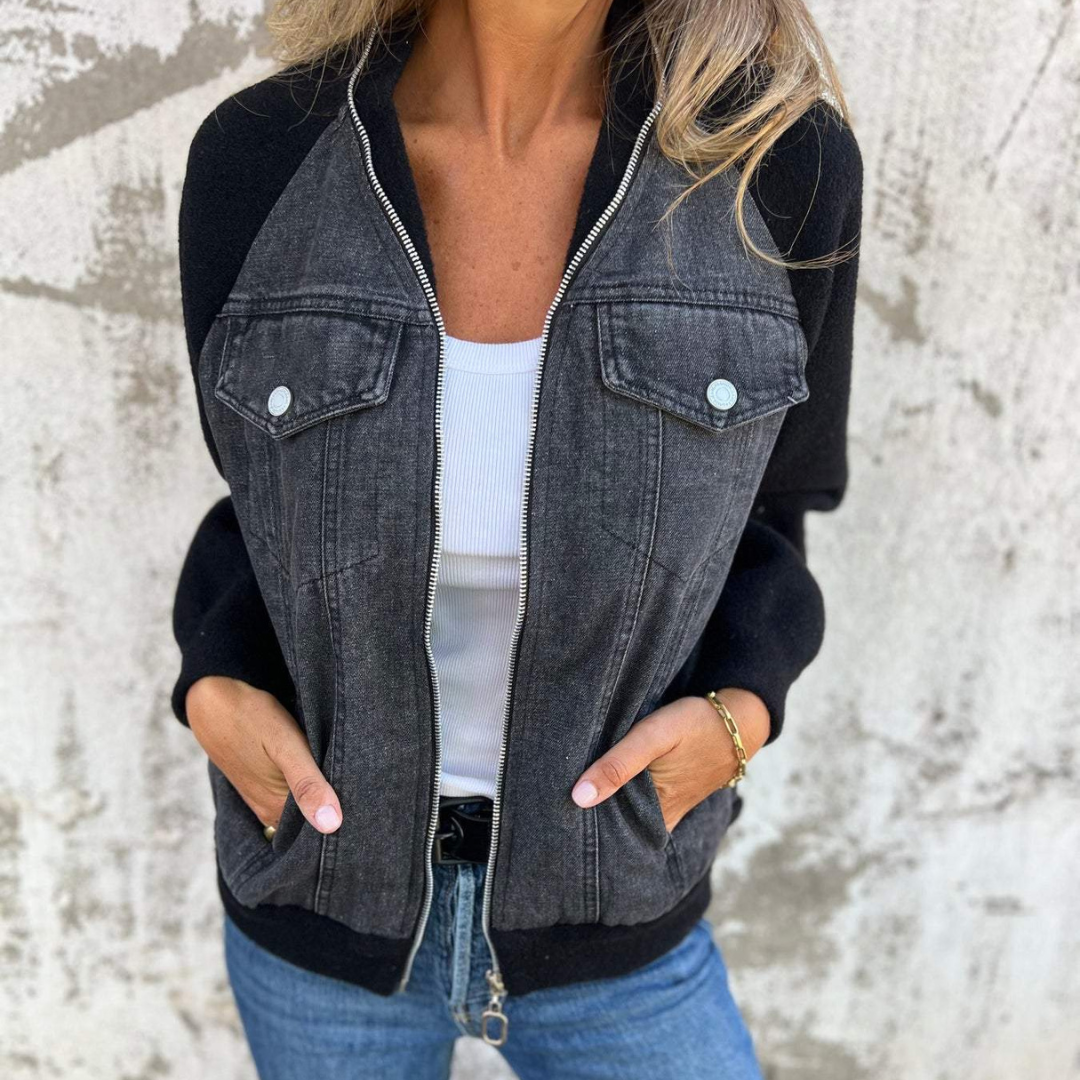 The Mila Classic Denim Bomber is the ultimate layering piece, featuring a stylish denim front with soft knit sleeves for a cozy yet effortlessly cool look. Designed for the modern woman who values both warmth and fashion, this jacket is versatile enough to take you from brunch to evening outings with ease.