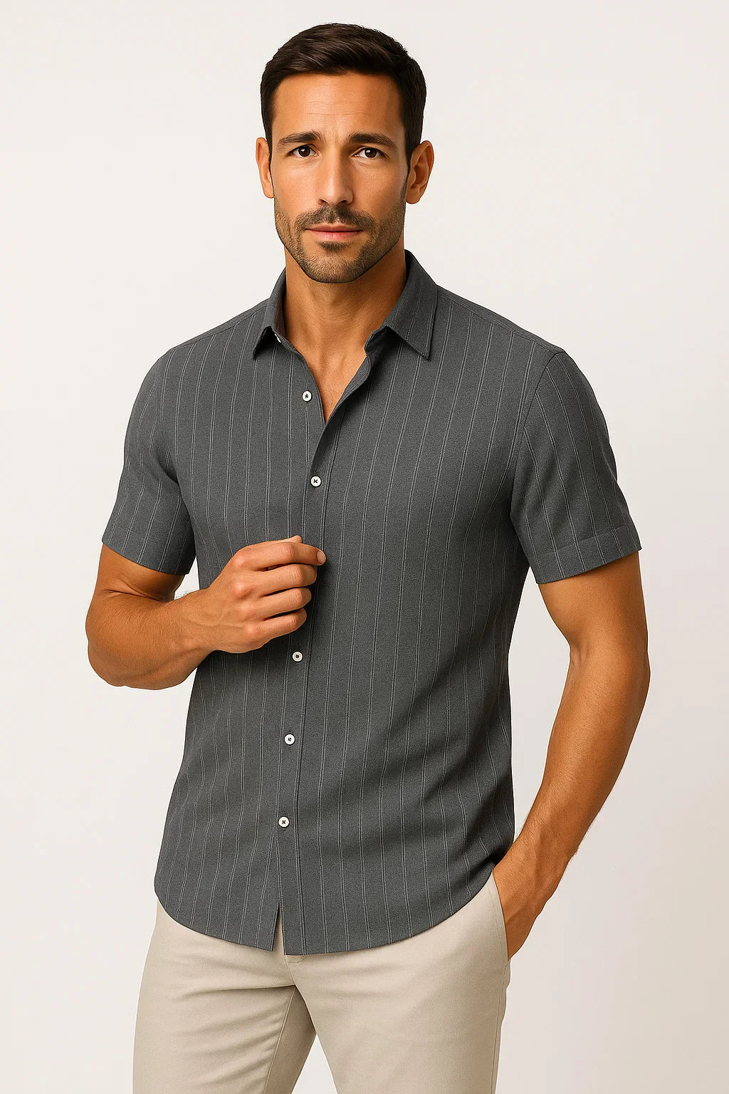 - Klassisches Design: Knopfleiste und Reverskragen verleihen dem Hemd einen zeitlosen Charakter mit moderner Note.