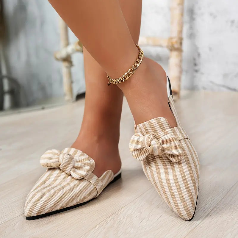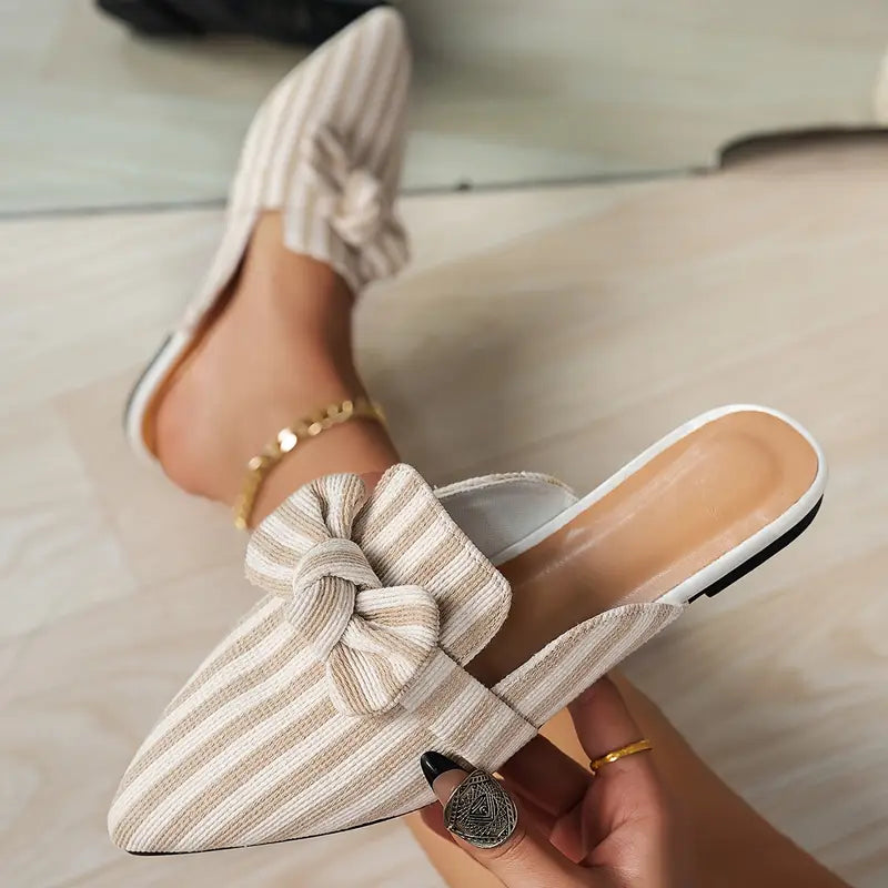 Mules mit Schleife | Spitz zulaufend | Feines Streifenmuster