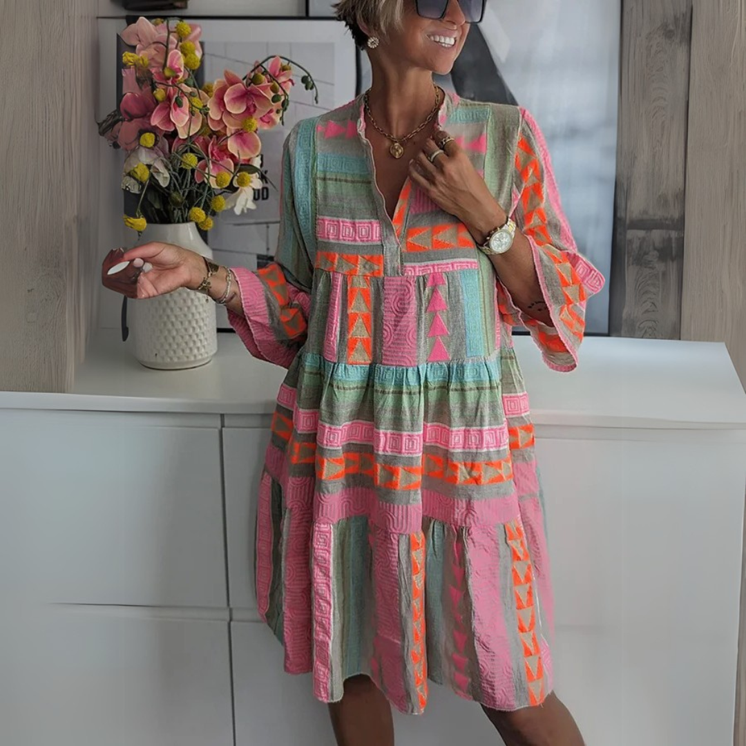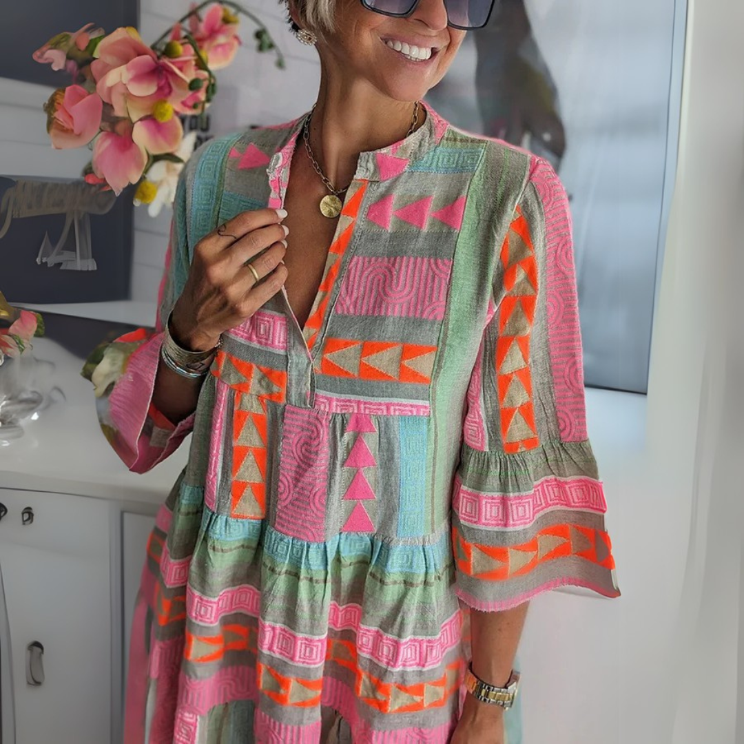 Meet the dress that combines effortless style with everyday comfort. The Nikki Dress drapes beautifully over your shape, creating a relaxed yet elegant silhouette that flatters without feeling oversized. Crafted from lightweight, breathable fabric, it keeps you cool and confident all day long. Whether you're out for brunch, shopping, or enjoying a casual day out, this is your go-to dress for effortless sophistication.
