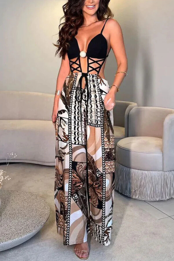 Paula® | Rückenfreier Overall mit Träger-Kreuz-Design, Patchwork-Print, elastischer Taille