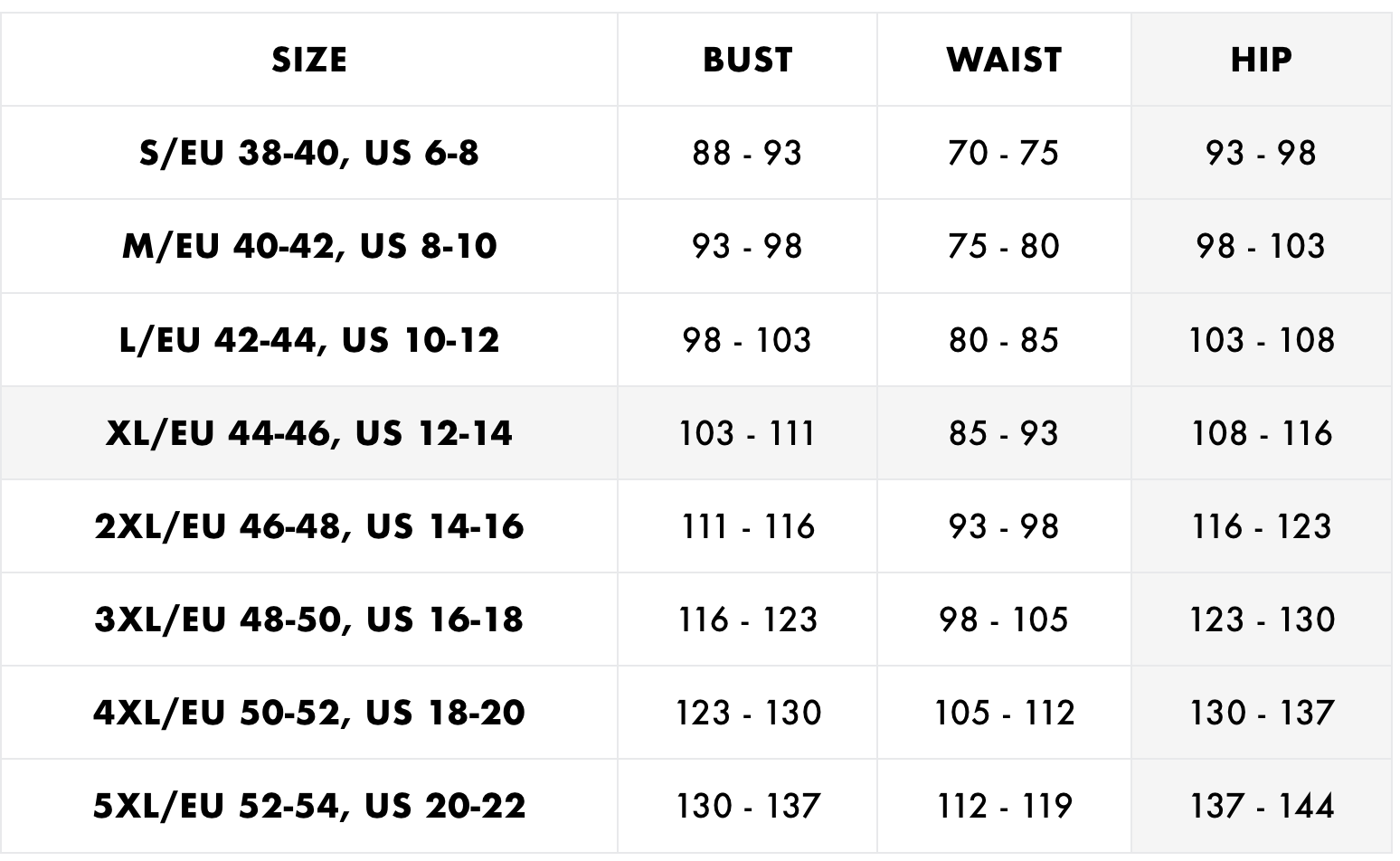 Größe Brust (cm) Taille (cm) Hüfte (cm)
