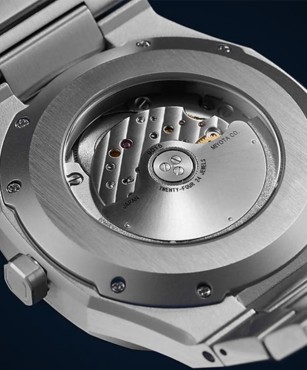 - Integriertes Armband: Das Edelstahlband mit Doppelschließe sitzt sicher und fügt sich harmonisch ins Design.