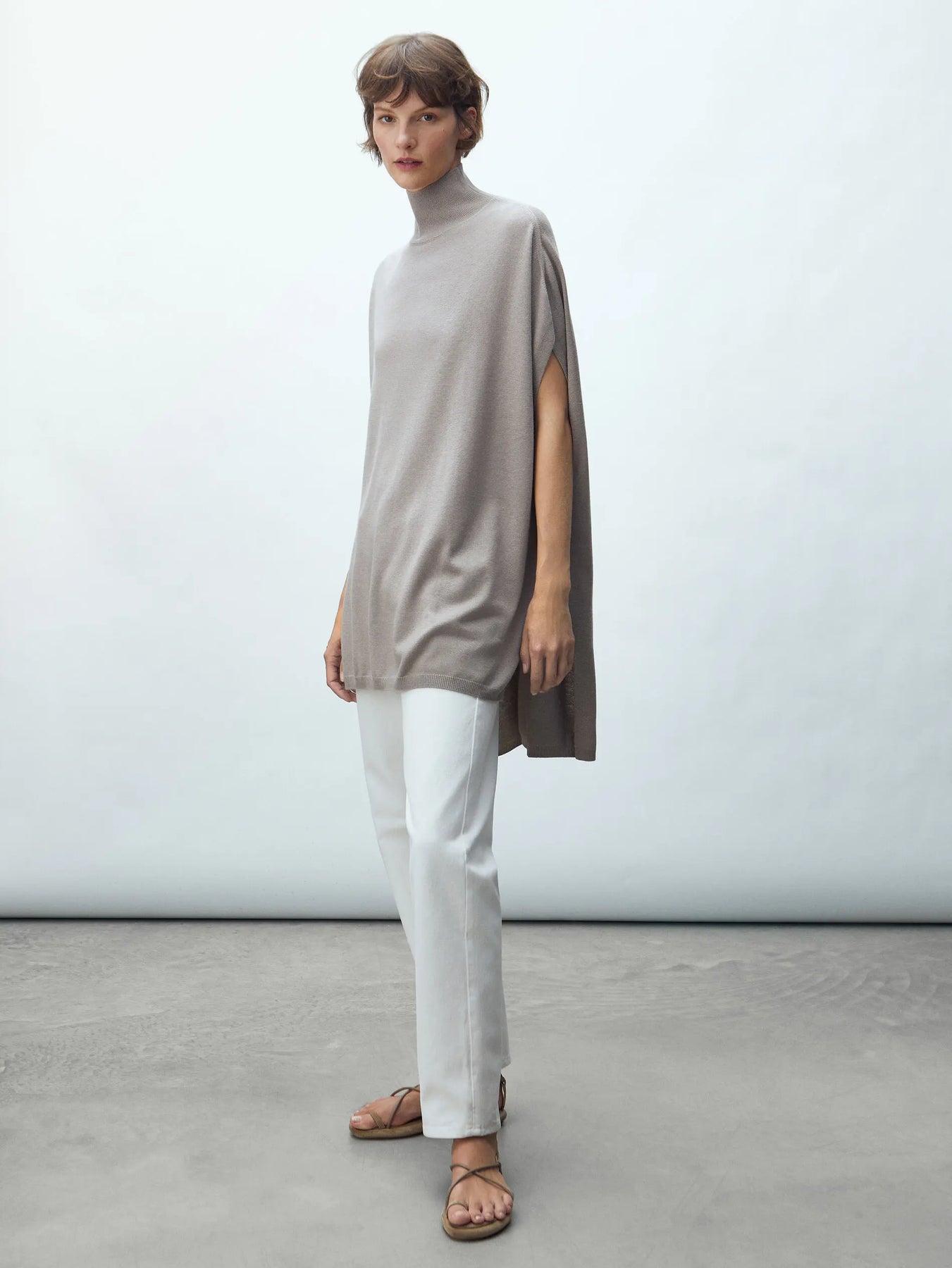 Dieses elegante Teil bringt einen Hauch fließender Raffinesse und sorgt dafür, dass du dich wohlfühlst, während du gleichzeitig ein Statement setzt. Ob zu Jeans oder über einem eleganten Kleid getragen, es ist ein unverzichtbares Highlight für deine Herbstgarderobe.