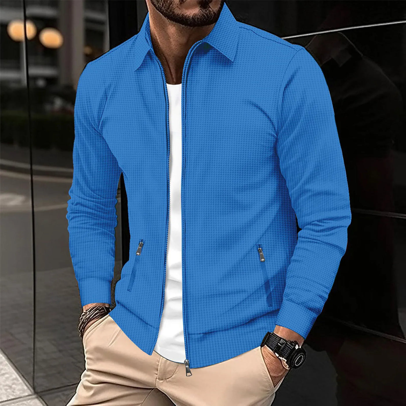 Mit der Thomas Slim-Fit Waffeljacke sind Sie perfekt für den Herbst ausgestattet. Diese vielseitige Jacke vereint eine elegante Waffelstruktur mit einem modernen, schlanken Schnitt – ideal, um jedes Outfit aufzuwerten. Mit funktionalen Taschen und einem stilvollen Reißverschluss-Lapel ist sie die perfekte Mischung aus Stil und Alltagstauglichkeit.