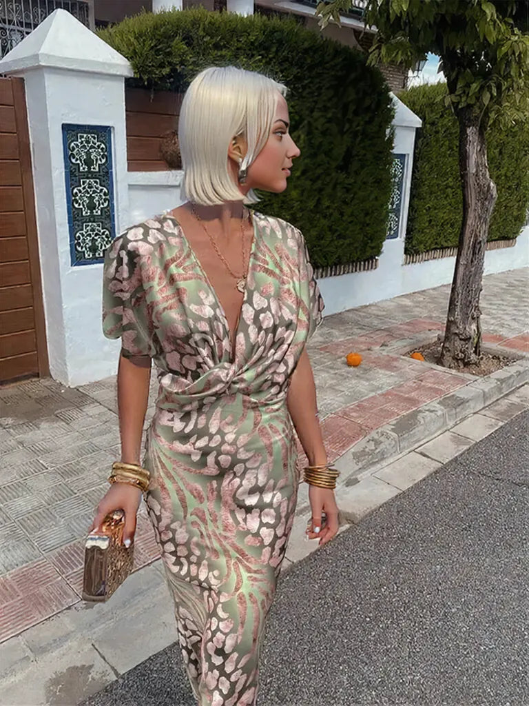 Verdrehter V-Ausschnitt Hochzeitsgastkleid