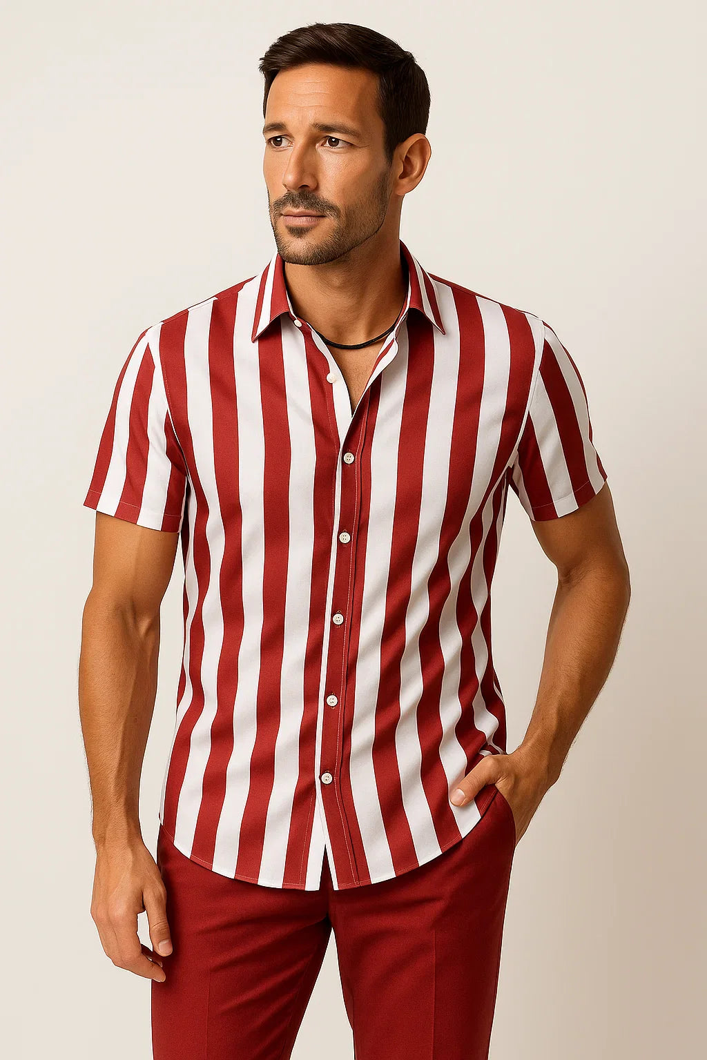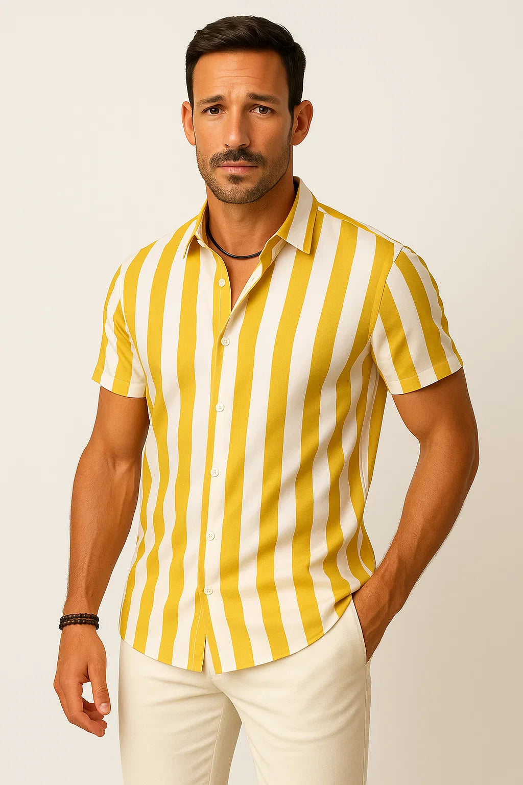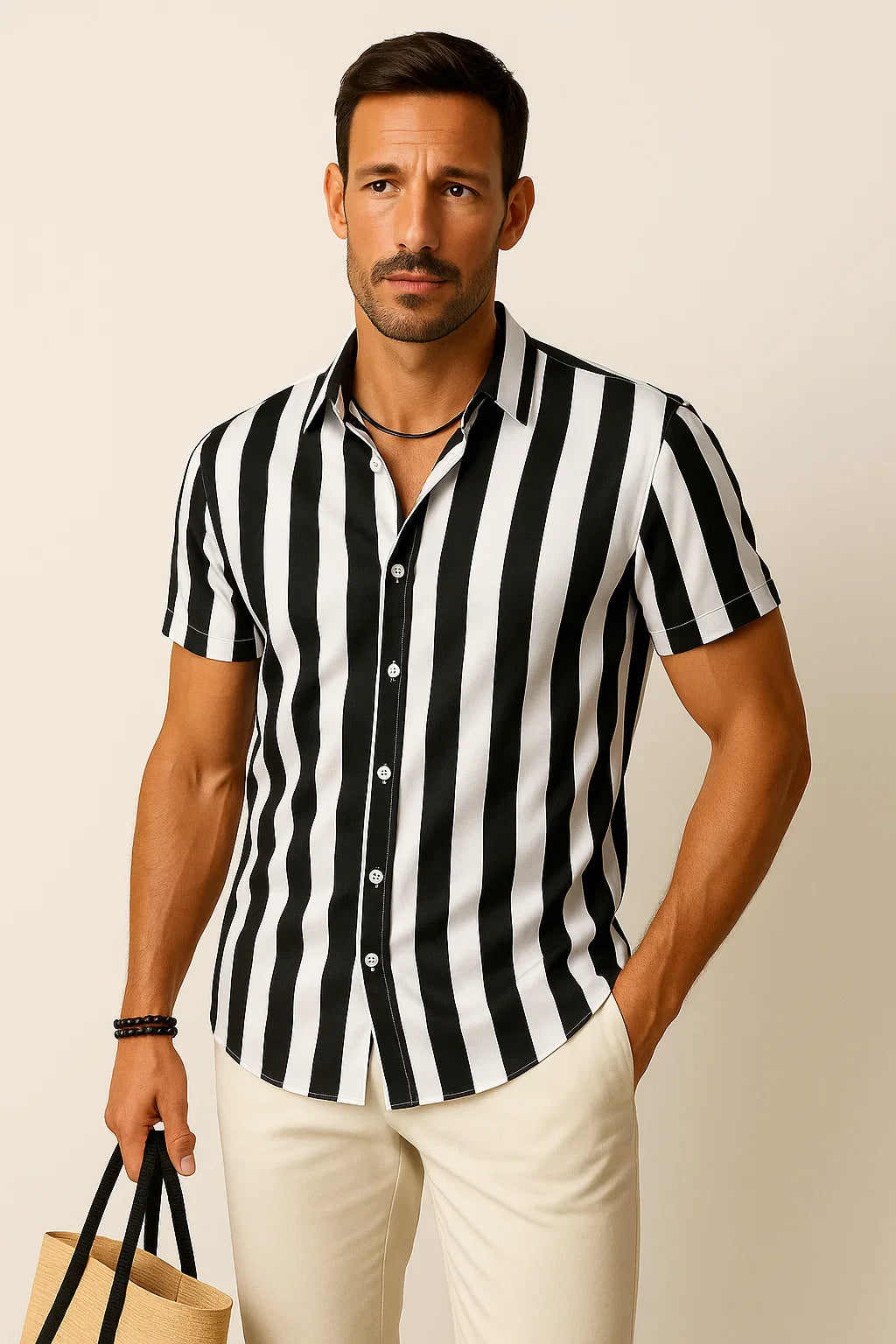 Dieses moderne Kurzarmhemd kombiniert zeitlosen Stil mit maximalem Tragekomfort. Das vertikal gestreifte Design schmeichelt der Silhouette und sorgt für eine dynamische Optik. Die klassische Knopfleiste und der entspannte Schnitt machen es zu einem vielseitigen Begleiter, ob lässig zur Jeans oder schick zur Stoffhose. Perfekt für warme Tage, stilbewusste Männer und mühelose Eleganz in jeder Situation.