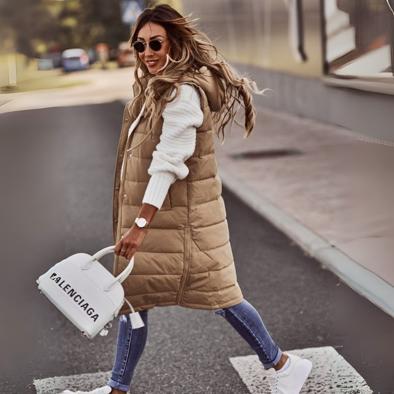 Weste Damen Mit Kapuze | Knielange Steppoptik