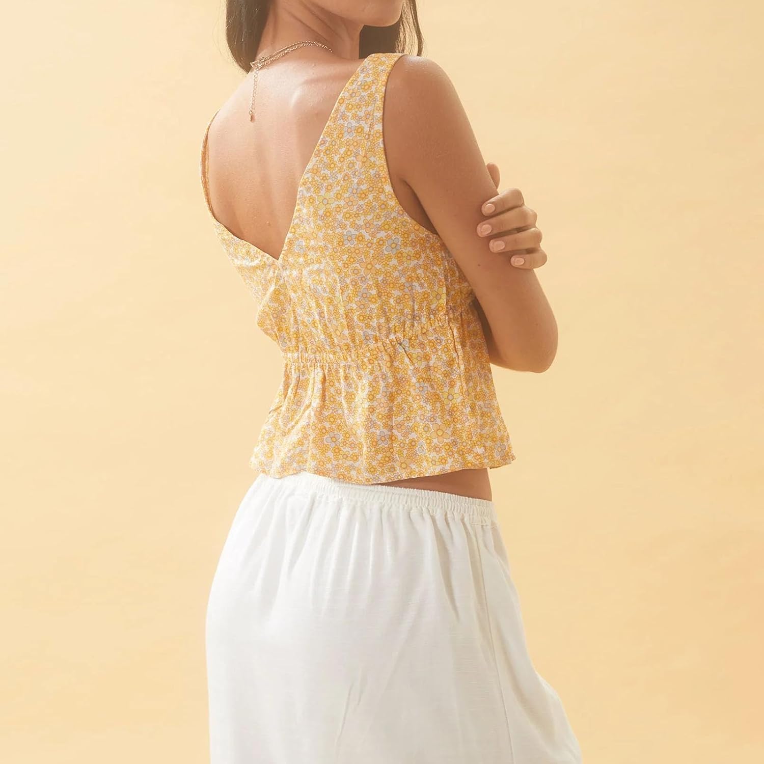 Aus diesem Grund gehört Zenette | Geblümtes Crop Top mit tiefem V-Ausschnitt und Knopfleiste in Ihren Kleiderschrank: