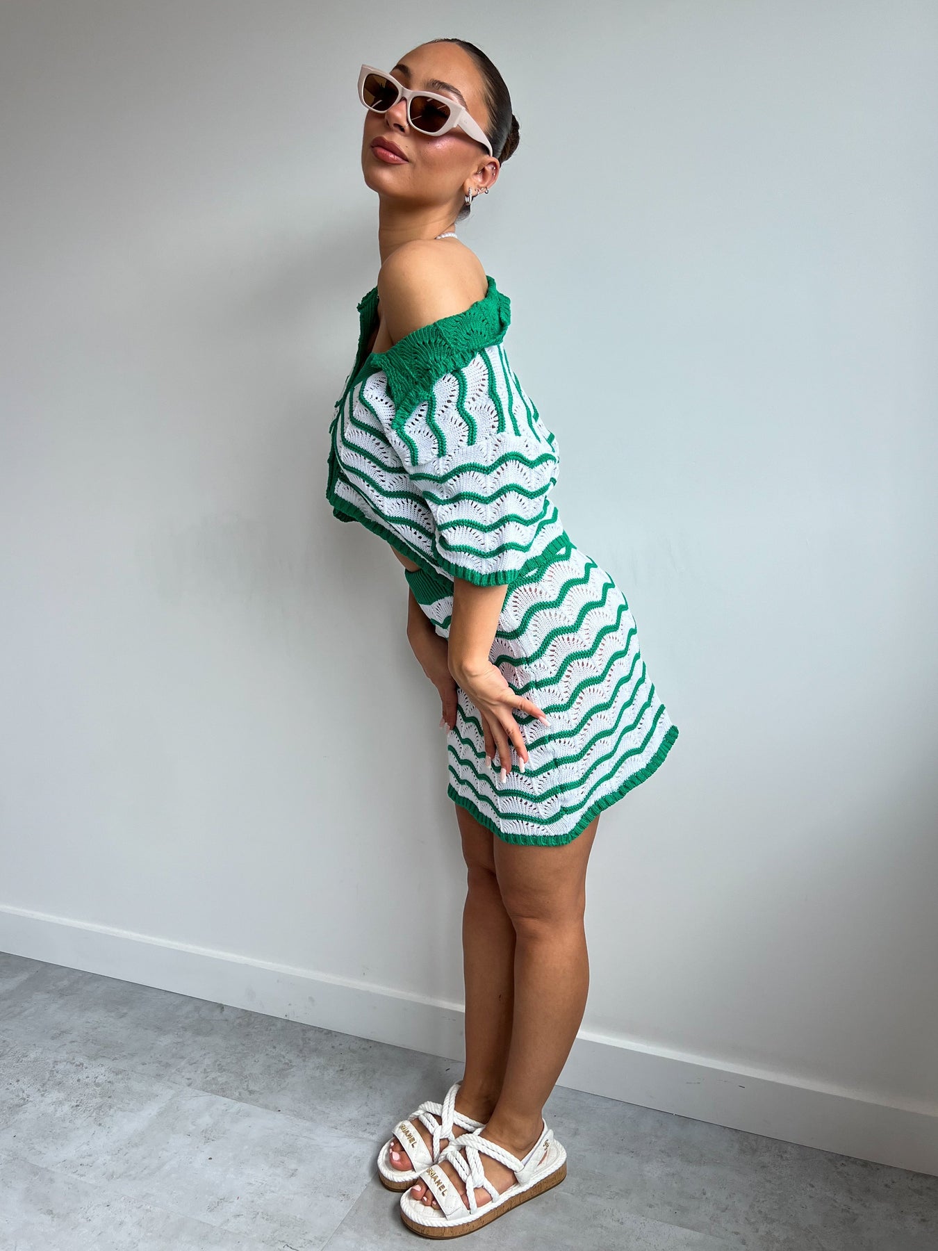 Styling-Tipp: Tragen Sie das Set mit Plateau-Sandalen und auffälliger Sonnenbrille für einen entspannten Retro-Vibe oder kombinieren Sie es mit schlichten Sneakers für einen modernen Sommerlook.