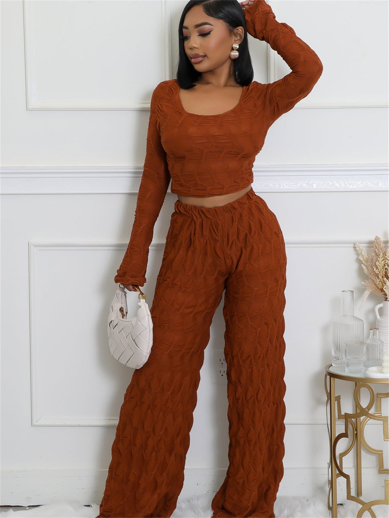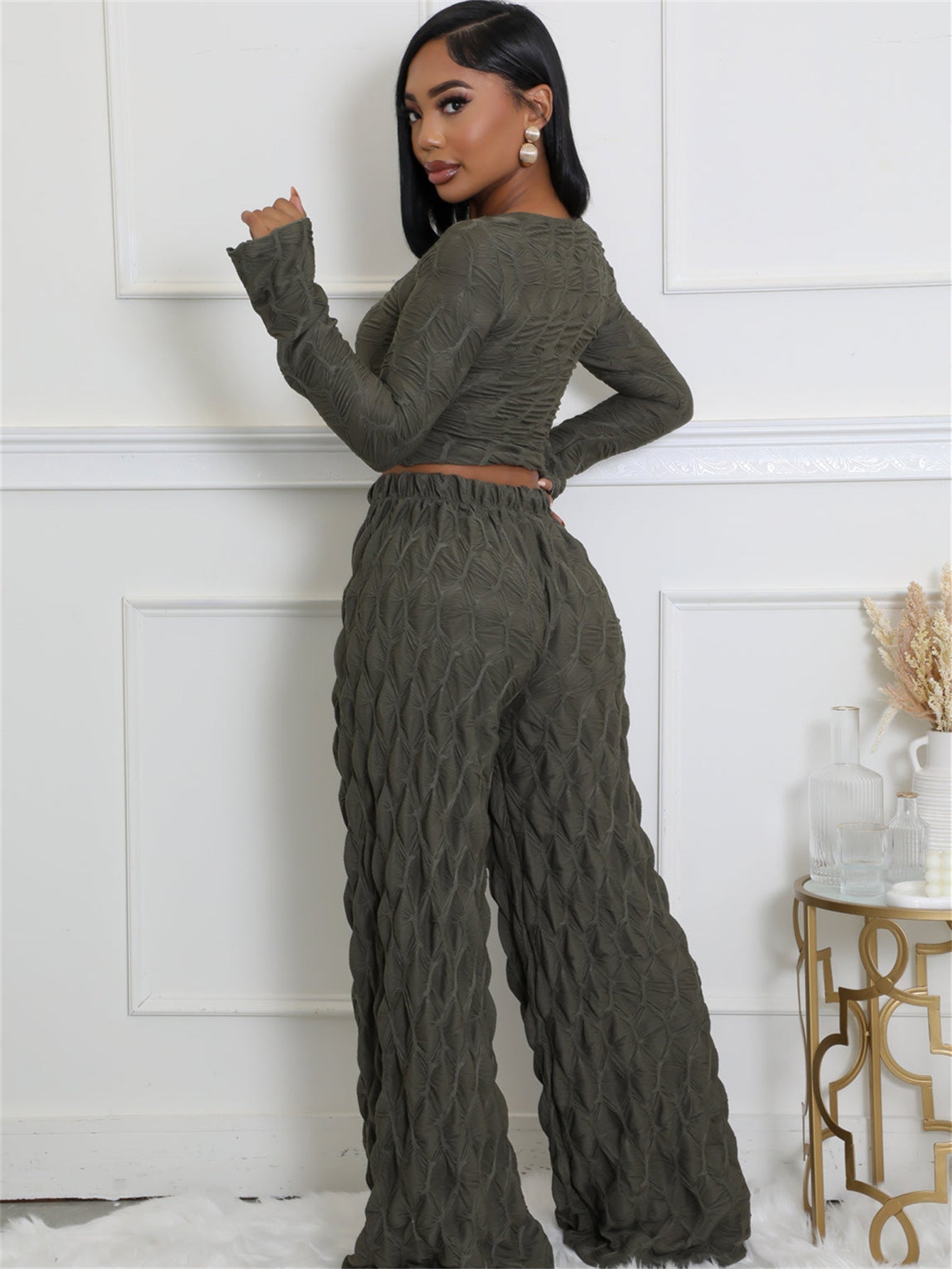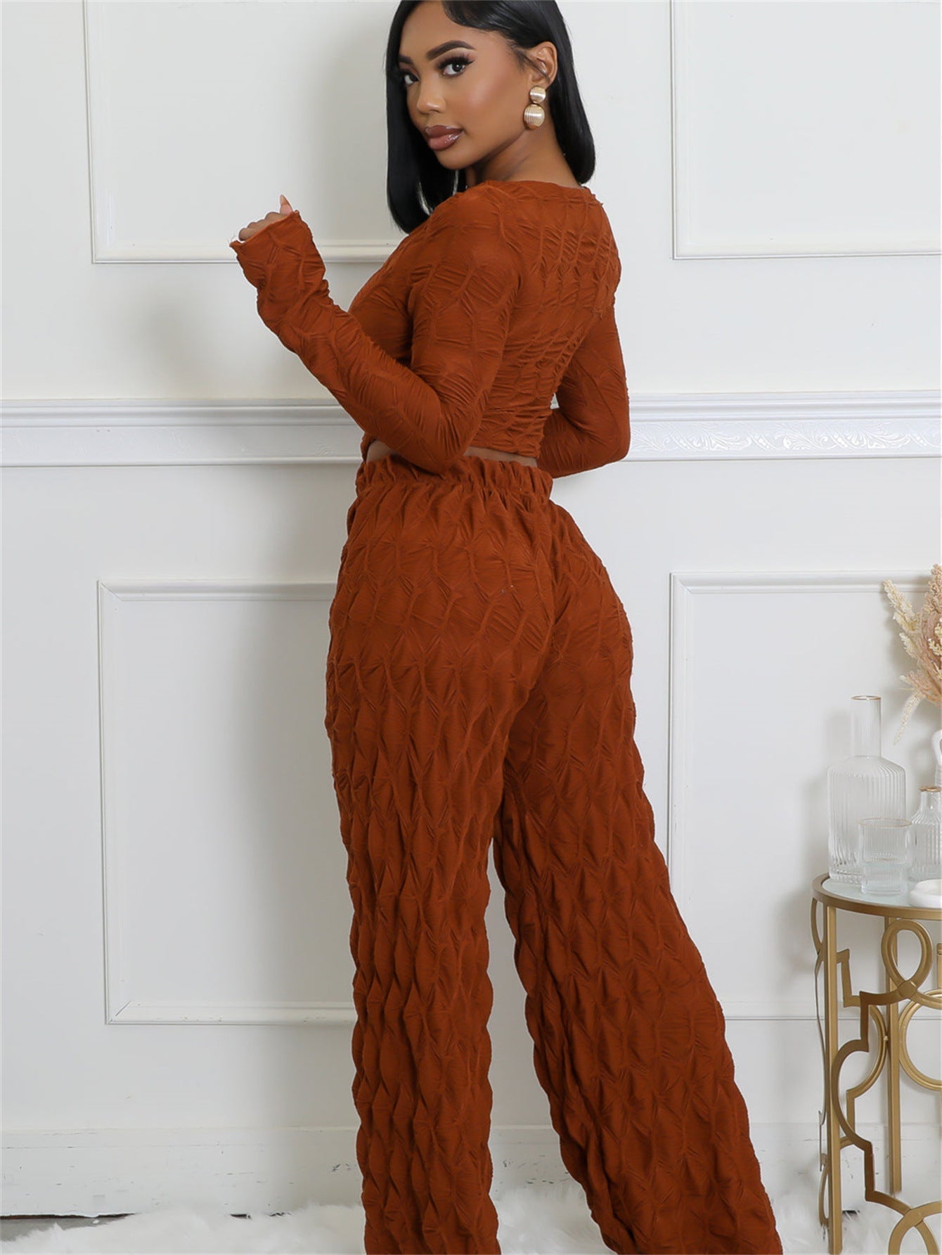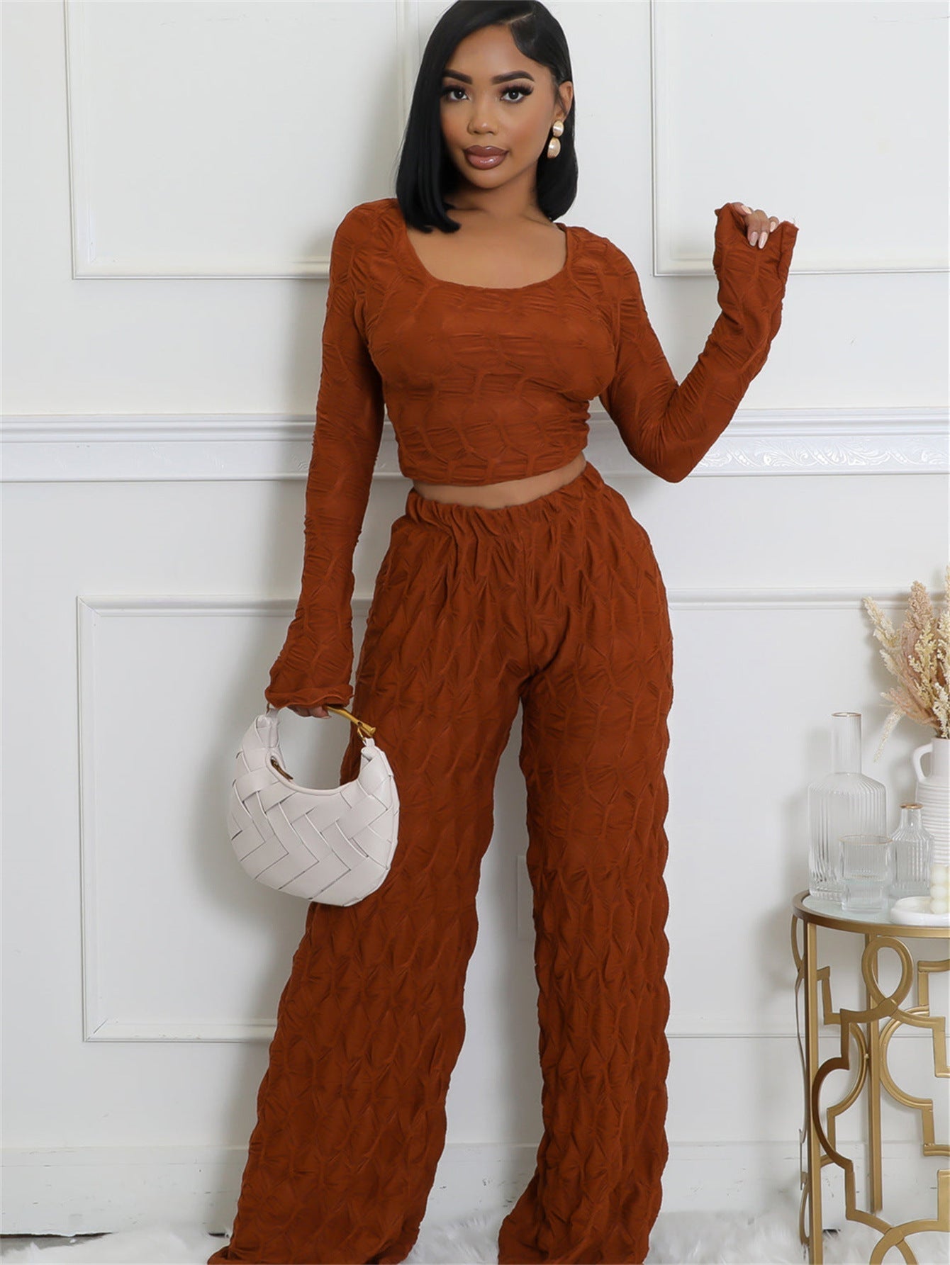 Zweiteiler mit Strukturmuster | Langarm & Weite Hose | Modern & Komfortabel