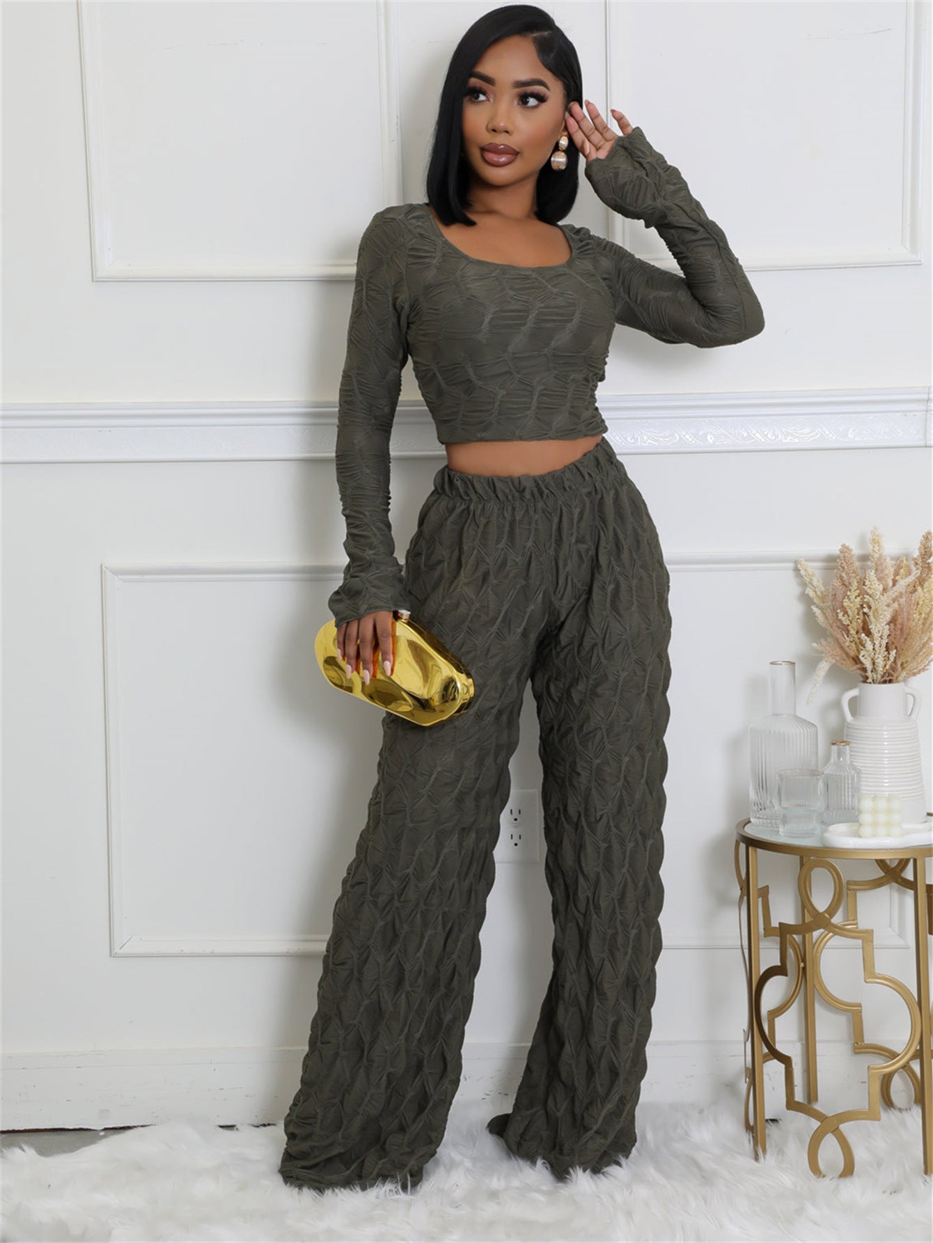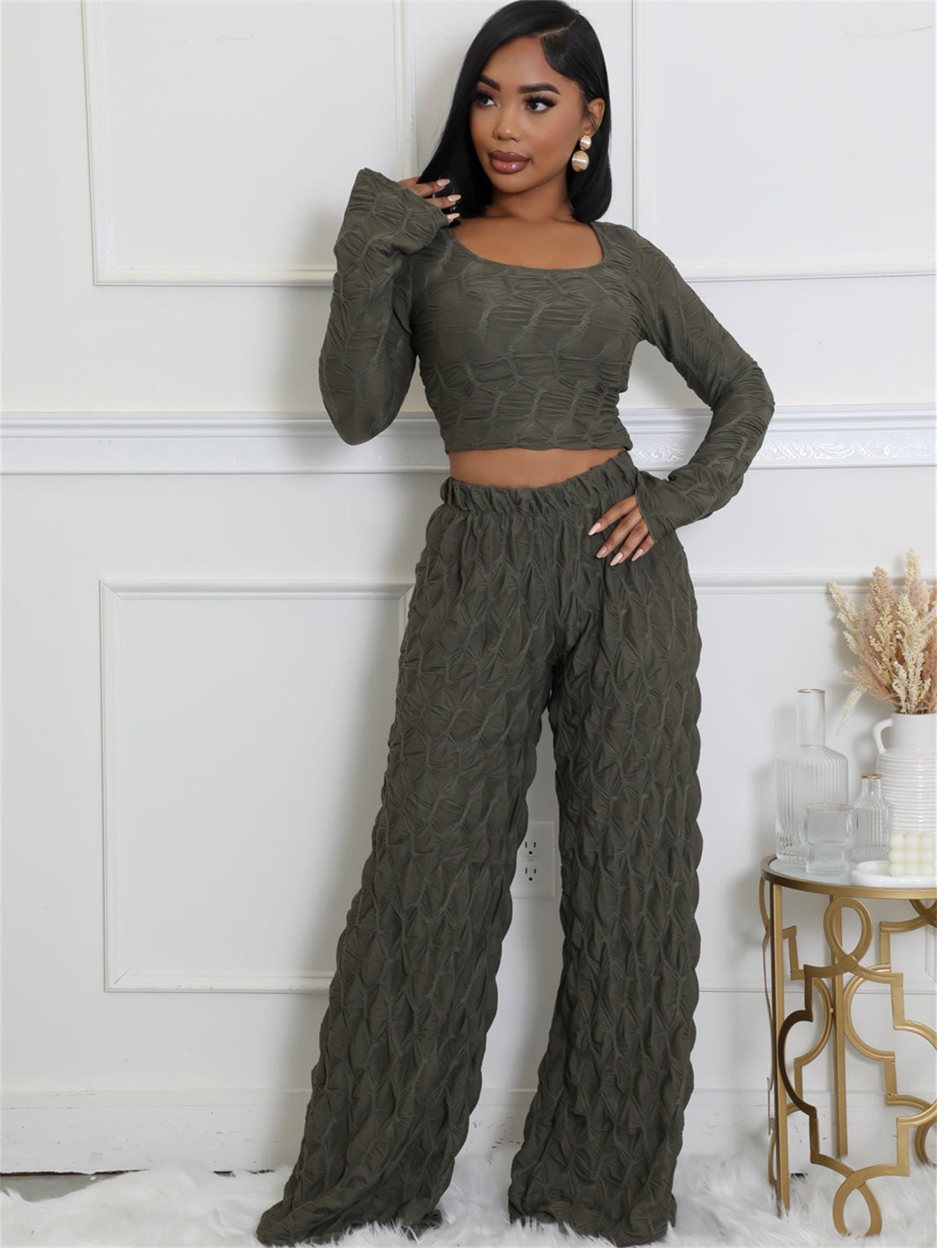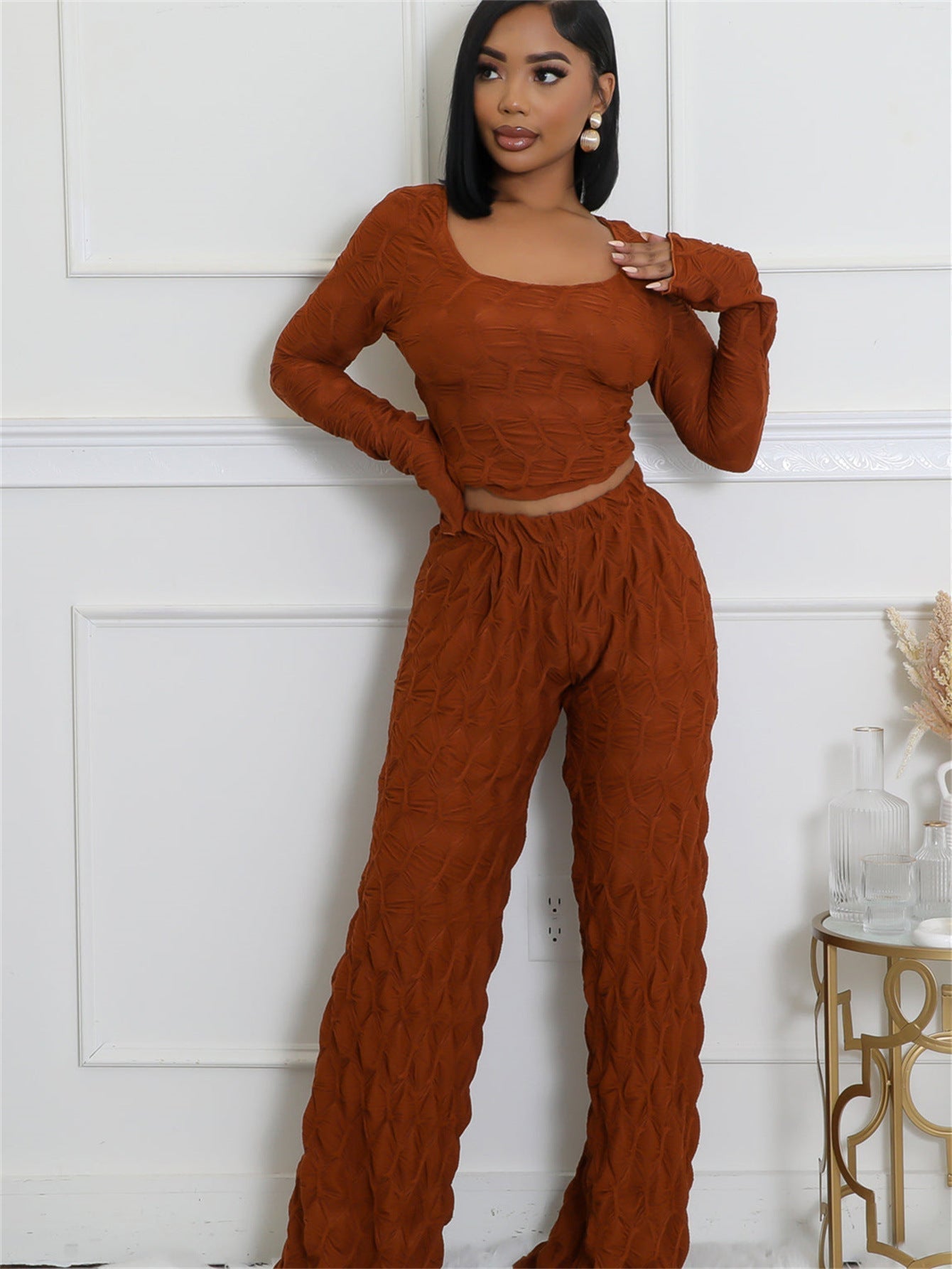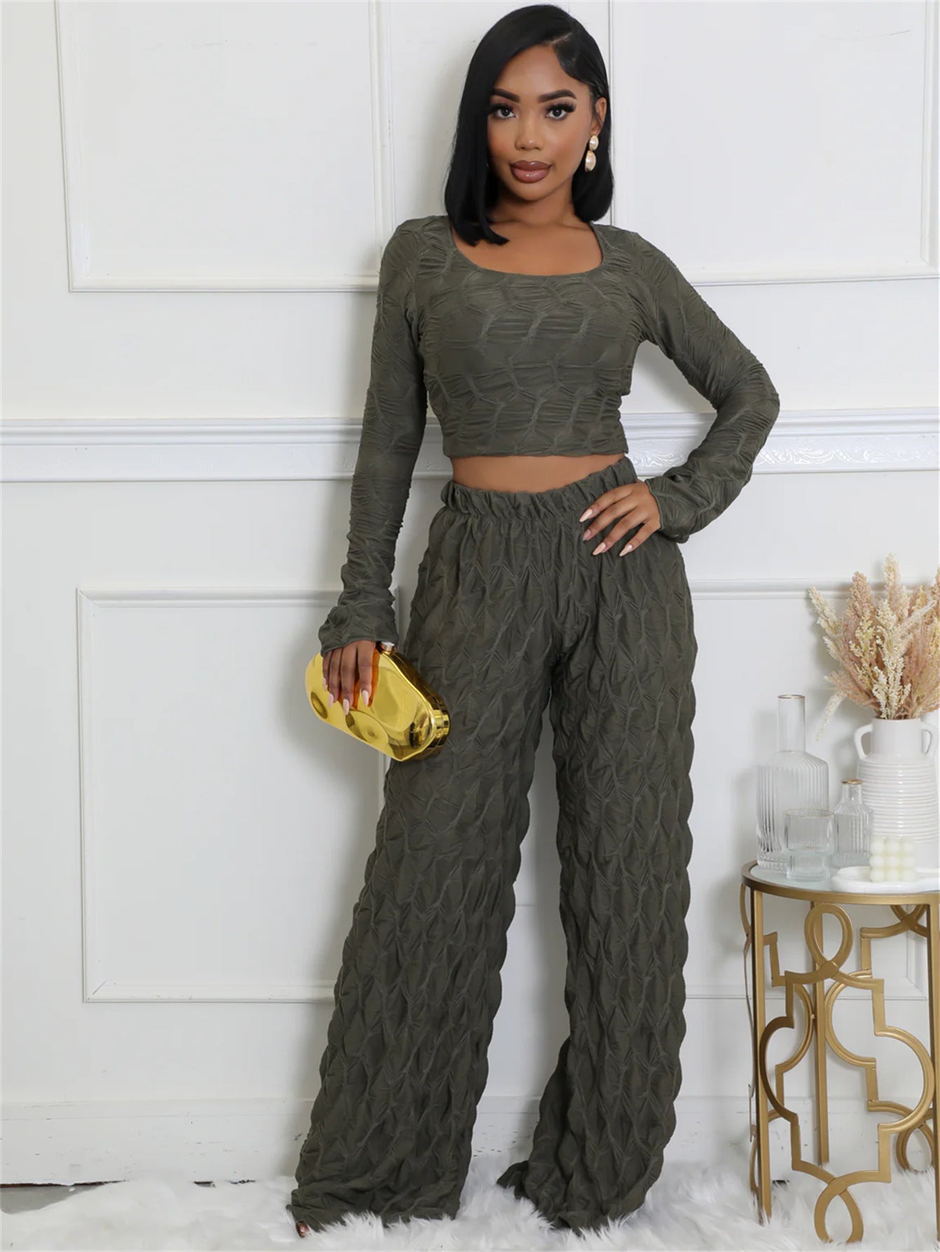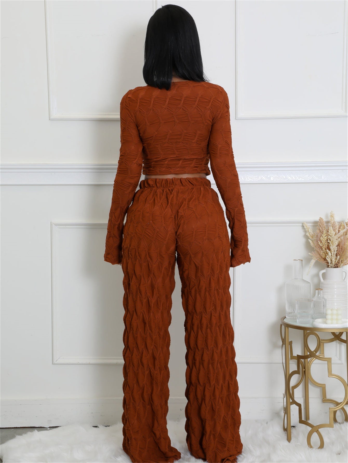 Zweiteiler mit Strukturmuster | Langarm & Weite Hose | Modern & Komfortabel